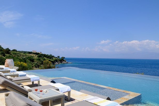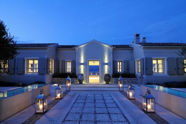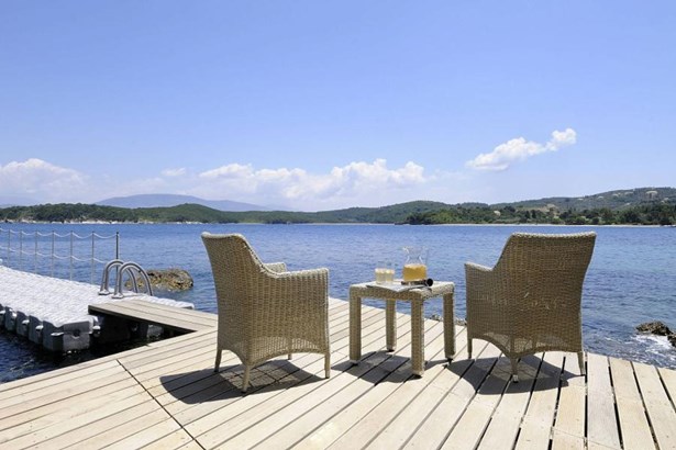 Nestled on a sprawling 16,000m² plot in the picturesque Kassiopi area of northeast Corfu, this exceptional seafront estate offers unparalleled luxury and privacy. Comprising two beautifully designed villas totaling 637m², the property accommodates up to 20 guests, making it an ideal retreat for families, friends, or groups. With direct access to a small pebbled beach, a private jetty, and breathtaking views of the cobalt blue Ionian Sea and the Albanian mountains, this estate seamlessly blends refined living with natural beauty. Paths wind through the lush landscapes, creating a serene atmosphere where every moment feels like a peaceful escape.