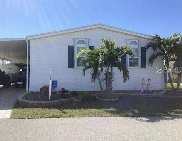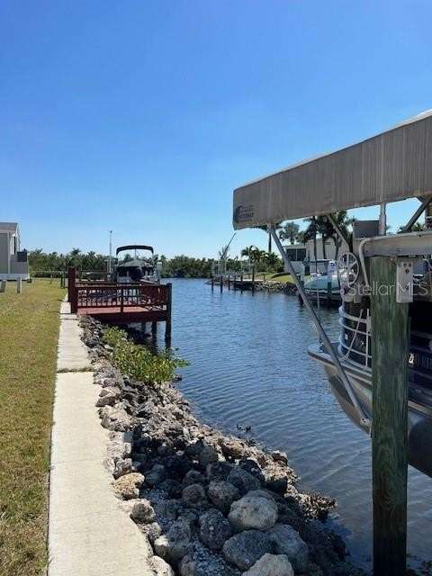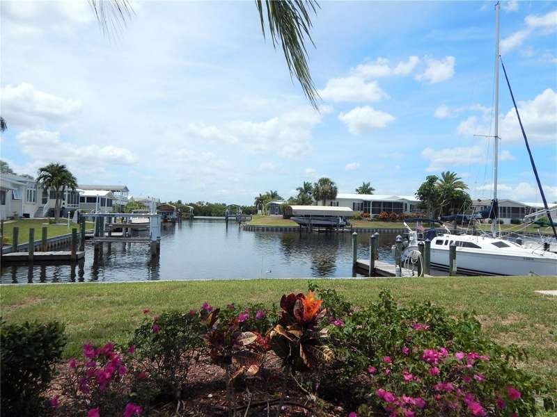 WOW! Truly one of the largest and finest homes in the community. This waterfront beauty is a boater's dream home! Built by Jacobsen, this Extra Wide home offers over 2,300 sf of beautifully updated living space. Feels like a NEW home. Generous room sizes and an open floor plan with handsome laminate flooring enhance the appeal of this home. A NEW KITCHEN was installed in 2018 with upgrades galore - Samsung appliances, quality wood cabinets with pull-outs, granite counters, over-sized island, reverse osmosis and much more. Other upgrades / extras include: NEW DOUBLE PANED WINDOWS 2019, plantation shutters, ACCORDION STORM SHUTTERS, NEW SIDING 2024, NEW DUCTWORK 2024,NEW ROOF-OVER 2019, NEW WATER HEATER 2024, NEW SCREENING ON FRONT LANAI 2024. The owner's suite is very spacious and includes a full wall walk-in closet and beautifully appointed bath with double sink vanity. Bedrooms two and three both have appealing decor and the guest bath is updated as well. BONUS - Enjoy our gorgeous Florida weather and the fantastic water view from the 30 x 14 Florida room overlooking the canal and Zyder Zee marina. Plexiglass windows, custom roll-up fabric shades and a mini-split for heat and AC make this wonderful room a place to relax and entertain year-round. A concrete pad beneath the lanai provides excellent storage space. Outside you'll find an EXTRA WIDE DRIVEWAY WITH CARPORT that allows for 2 cars + golf carts and bikes, a small 2nd screened lanai and a large shed with workshop with AC. Waterfront amenities include a brick paver patio, COVERED BOAT LIFT and dock for water lovers. The view is fantastic too! Just 20 minutes to the Harbor via Alligator Creek. This is an exceptionally well-maintained and updated property. Windmill Village is a resident-owned community with a salt-water marina, upscale clubhouse, and a fun choice of activities to join. A low monthly fee covers the lawn care, water & sewer and recreation facilities. List price does not include the $20k share buy-in that is returned when you sell. Located just 5 minutes from downtown Punta Gorda, historic waterfront district and many restaurants.