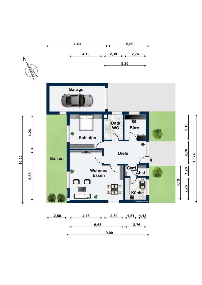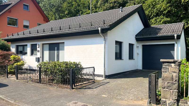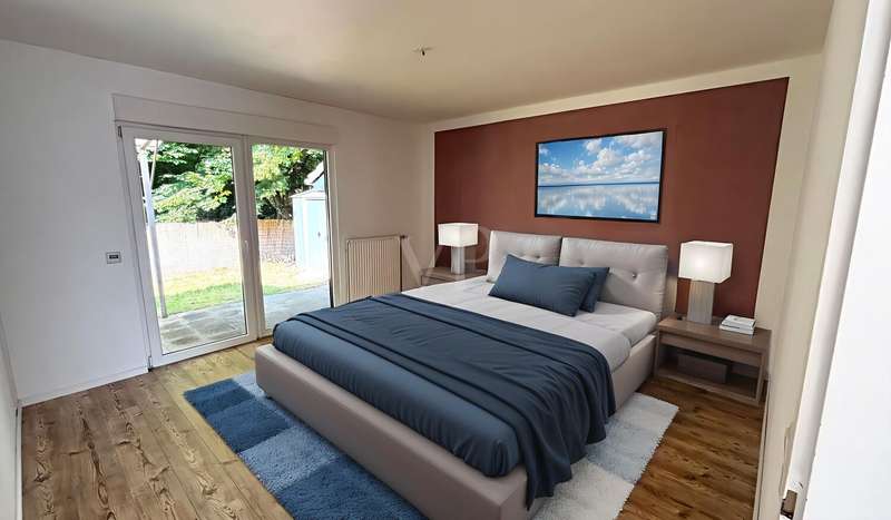 Welcome to your new home! This charming, single-storey property, built in 1975, impresses with a living space of approx. 91 m², a well thought-out room layout, numerous modernizations and a lovingly landscaped garden with garage. Whether as a retirement home, a comfortable home for couples or stylish living with a home office - a property with heart and mind awaits you here. As soon as you enter, you are greeted by a spacious entrance area that offers plenty of room for a wardrobe and personal space. A small, well-designed room is ideal as an office or hobby room - perfectly adapted to the demands of everyday life. The quiet bedroom offers plenty of space for restful nights and storage space for your furnishings. The partially renovated bathroom is equipped with a shower and bathtub. The heart of the property is the spacious living and dining area, which impresses with its openness and brightness. From here, you have direct access to the lovingly landscaped garden, which is ideal for relaxing, gardening or socializing. The adjoining kitchen is energy-optimized thanks to additional interior insulation (from 2021) and can be designed according to your own ideas. The house has been extensively modernized in recent years: In 2015, all windows were replaced and fitted with high-quality aluminum shutters that can be conveniently controlled electrically. At the same time, the front door was replaced, the fuse box was modernized and all radiators were replaced, including new thermostatic valves. The garden fence was also completely renewed as part of these measures. In 2019, the roof was extensively renovated with high-quality 120 mm insulation, which not only improved living comfort but also energy efficiency. In 2021, the kitchen also received 30 mm thick interior insulation, which ensures a pleasant indoor climate. The electric garage door was installed in 2024. The property is heated by a gas central heating system from 2008. The well-kept garden with terrace rounds off the overall picture - here you can enjoy privacy and plenty of potential for personal design. The adjoining garage offers secure parking and additional storage space. Move in and feel at home! This lovingly modernized property combines ground-floor living with a well thought-out room layout and a beautiful garden. It is ideal for anyone who appreciates comfort, tranquillity and a solid building structure - whether as a retirement home, an investment or a modern home with a high quality of life.