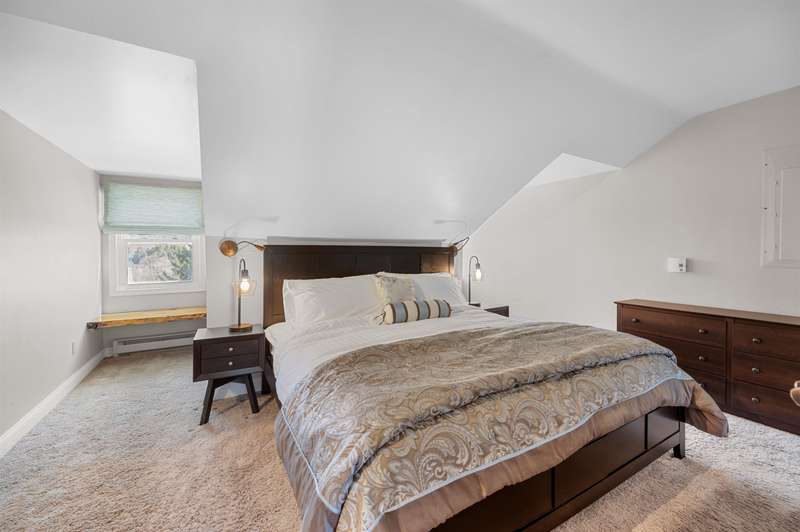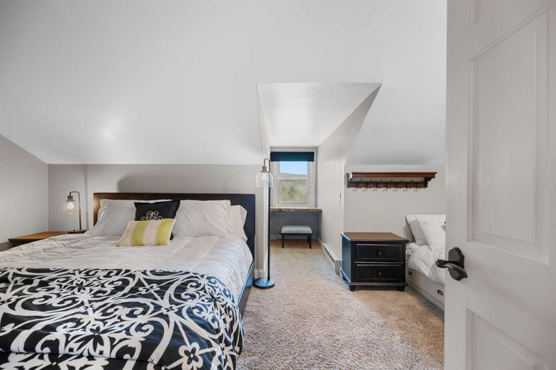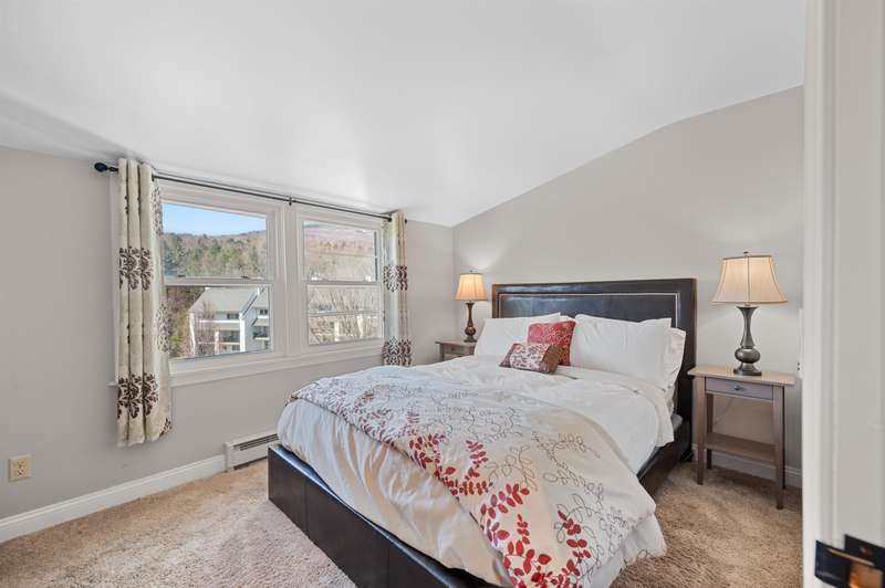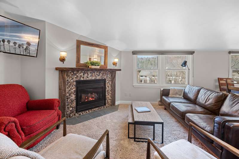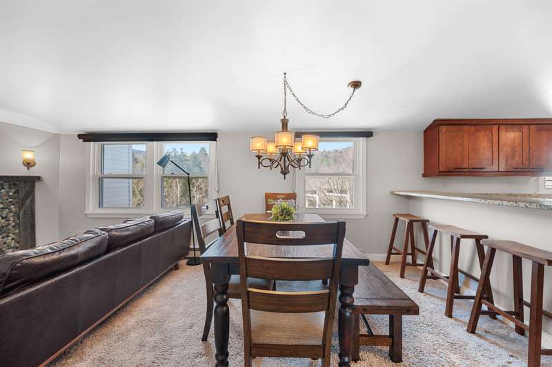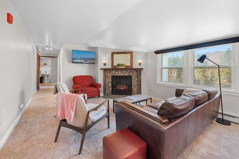 Come experience this seldom available, fully furnished 3-bedroom residence at The Lodge Condominiums at Stowe Mountain Resort—the ultimate mountain escape in one of Vermont's most iconic destinations. This spacious top-floor residence offers convenient ski-in/ski-out access to the Toll House double lift, placing world-class skiing right at your doorstep. After a day on the slopes, exploring hiking trails, or taking in the charm of the Stowe area, unwind in the inviting living area. Large windows frame stunning mountain views, while a cozy gas fireplace sets the perfect atmosphere for après-ski or post-hike relaxation and gatherings. The primary suite is a sanctuary of comfort, boasting a deluxe bathroom with an oversize soaking tub and walkin shower—ideal for unwinding after an active day. A recently updated kitchen and new flooring throughout bring fresh, modern style and everyday comfort to this alpine retreat. No matter the season, endless recreational opportunities await...