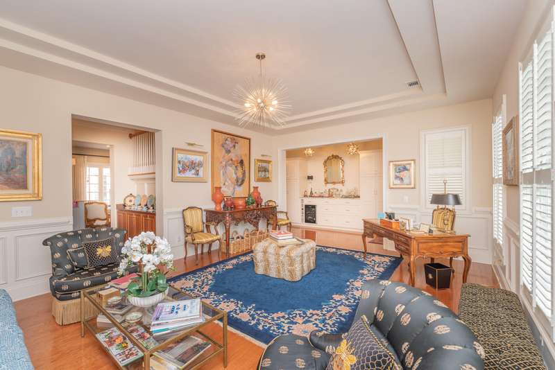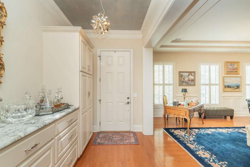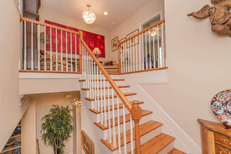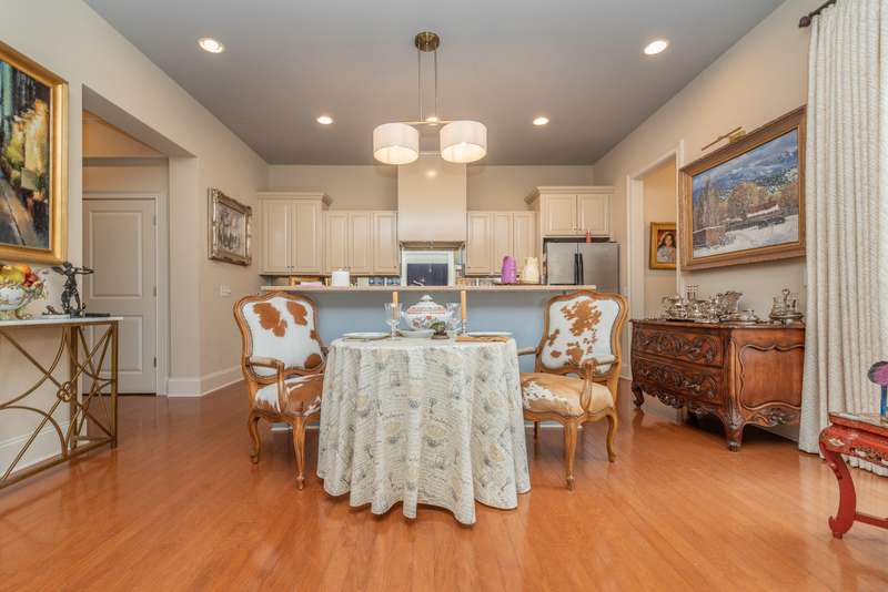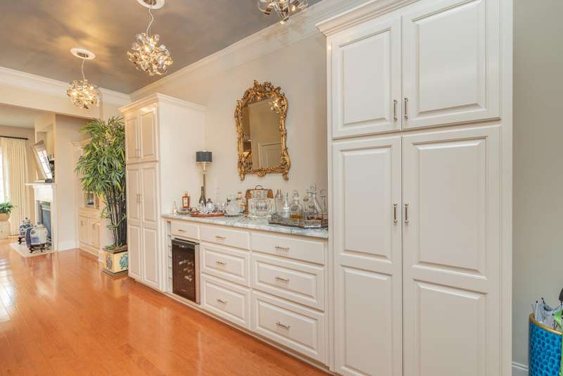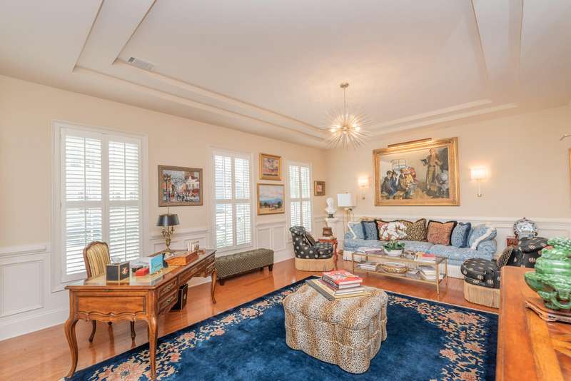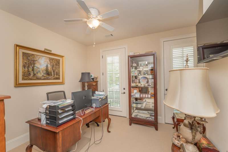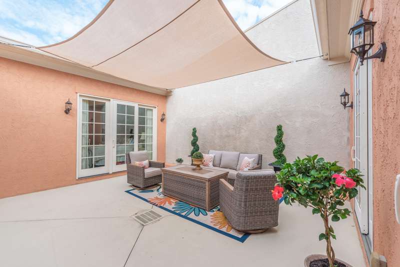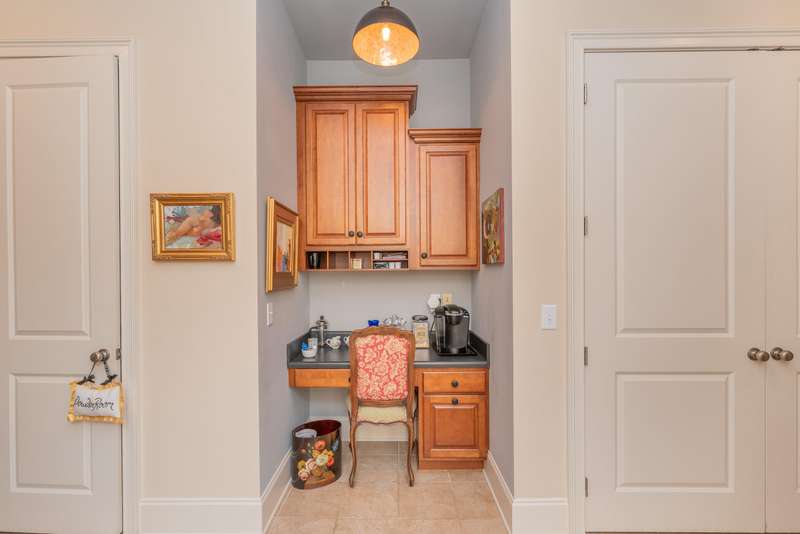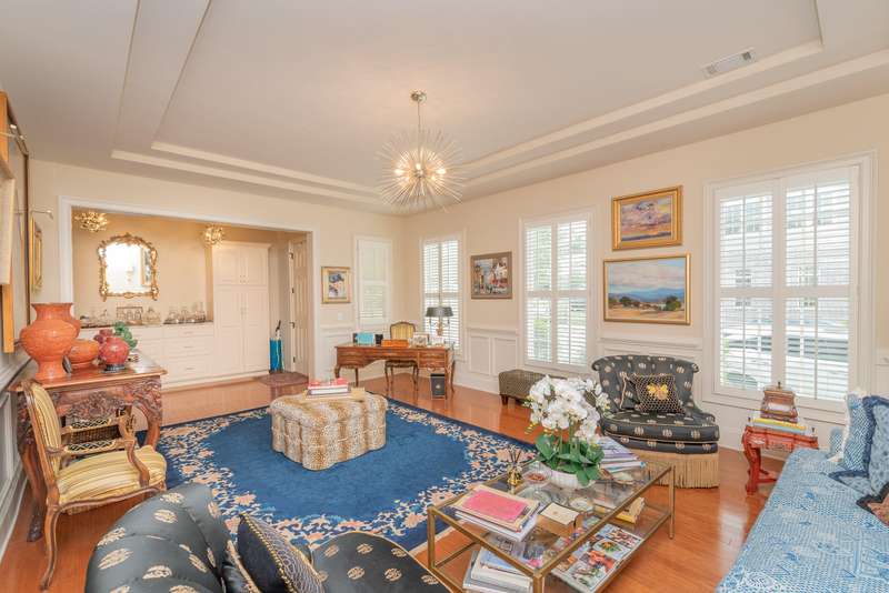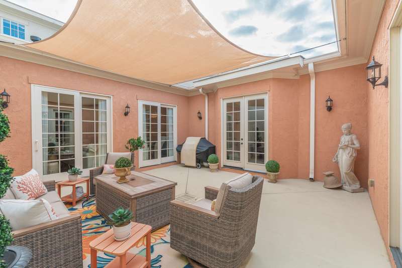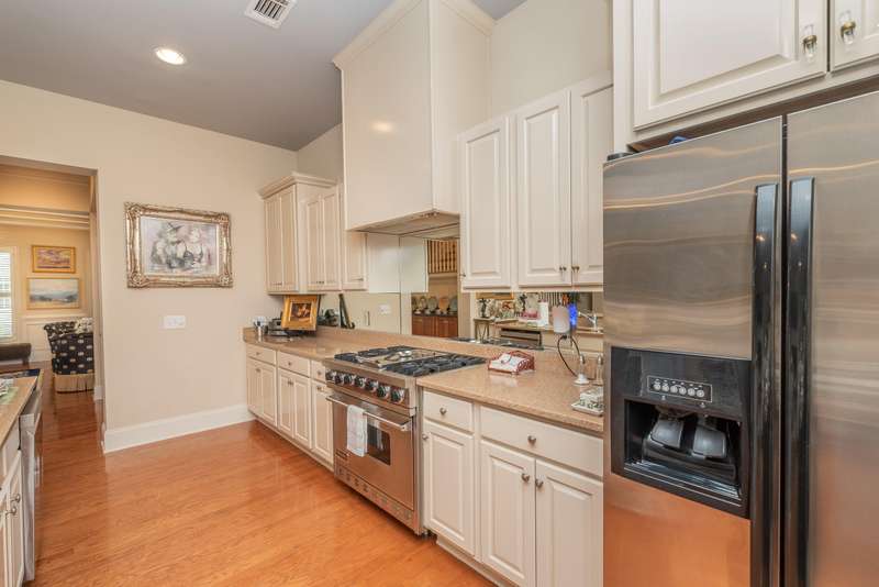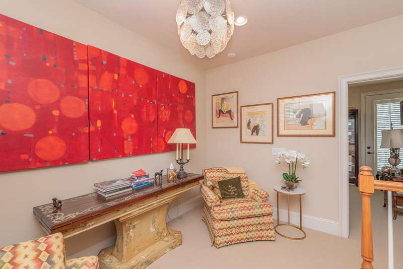 Exceptionally well designed high end townhome in the Village @ Woodside. This home features hardwood flooring on first floor with amazing built-ins. The natural light throughout this home is highlighted by its custom cabinetry and 10' ceilings. Centered in the den are views of a private courtyard. Kitchen opens to den feature Quartz countertop and high-in appliances.. Main level owners suite with walk in shower, large closet and entrance to courtyard. Upper level features 2 BRs, 2 full BA w/walk in closets. Great community walking distance to restaurants and shopping