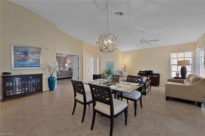 Handsome PRICE REDUCTION! The view is by far one of the most beautiful in Worthington with long lake and golf views from the popular Winchester floorplan. Turnkey furnished with soft background colors. Impact glass sliders add approximately 200 feet of space to enjoy. Tile throughout and bedrooms are carpeted. Stainless appliances, granite counters and glass backsplash and pendant lights are just a few of the features. Enjoy the fabulous par 72 championship golf course. Add social and competitive tennis, bocce, an unbeatable array of social activities, casual and formal dining, state-of-the-art fitness, resort-style pool and spa and fun cabana. Private carts permitted with an annual trail fee. There is a one-time transfer fee of $12,500 for new buyers and $1,291 fee for current residents relocating in the community.