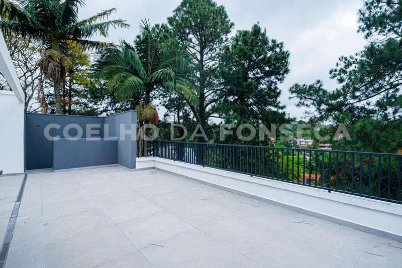 A presença de grandes janelas em todos os cômodos destaca a abundância de luz natural e a integração visual com a paisagem circundante, e de estrutura para a instalação de um elevador que atende a todos os andares adiciona um toque de conveniência.