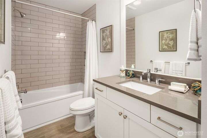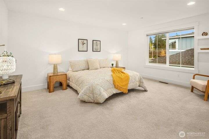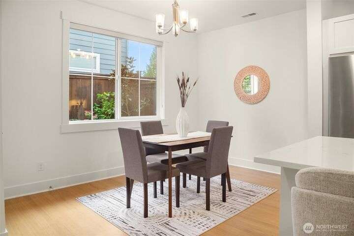 Edmonds 3-bed townhome by Select Homes nestled in the heart of 5-corners & filled w/ natural light. Open-plan main features a contemporary kitchen w/ all SS KitchenAid appliances, misterio quartz countertops & island w/ seating. Sliding doors lead to fully fenced backyard w/ partially covered patio & turf for low-maintenance enjoyment. A/C ensures year-round comfort. Sleek floor-to-ceiling tiled electric fireplace & LVP flooring throughout main level add warmth & modern appeal.3 beds, including spacious Primary Suite w/ dual sinks, a walk-in shower, & WIC. Thoughtful built-ins throughout for style & function. Complete w/ 2-car garage. Ideally located near schools, parks & mins to Bowl’s beaches, boutiques, restaurants & festivals.