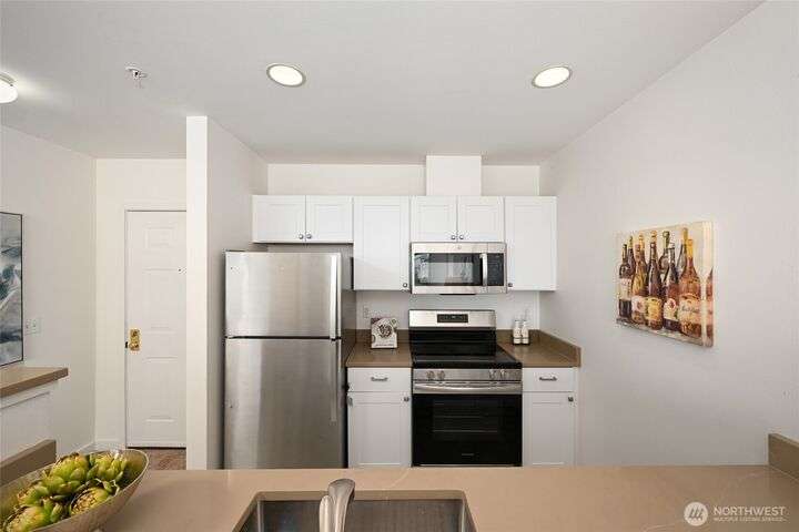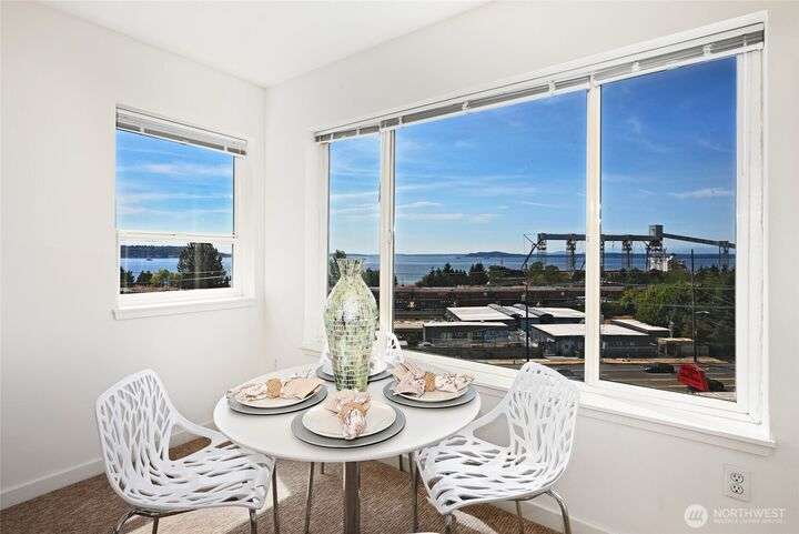 Recently renovated, 2-bedroom, 1-bath condo with stunning west-facing views of Elliott Bay and the Olympic Mountains. Lovingly maintained by its original owner, this home features new appliances, full-size washer & dryer, and abundant closet space. Enjoy natural light with bright, open living just minutes from Downtown, the new waterfront, and Lower Queen Anne. Relax with sunsets from your private perch, plus the convenience of 1 dedicated covered parking space with storage. Move-in ready and perfectly located for the best of city living!