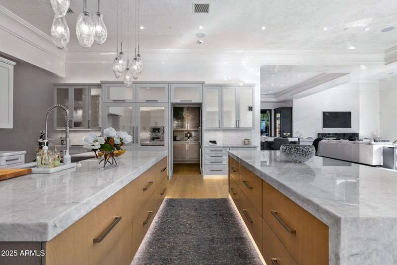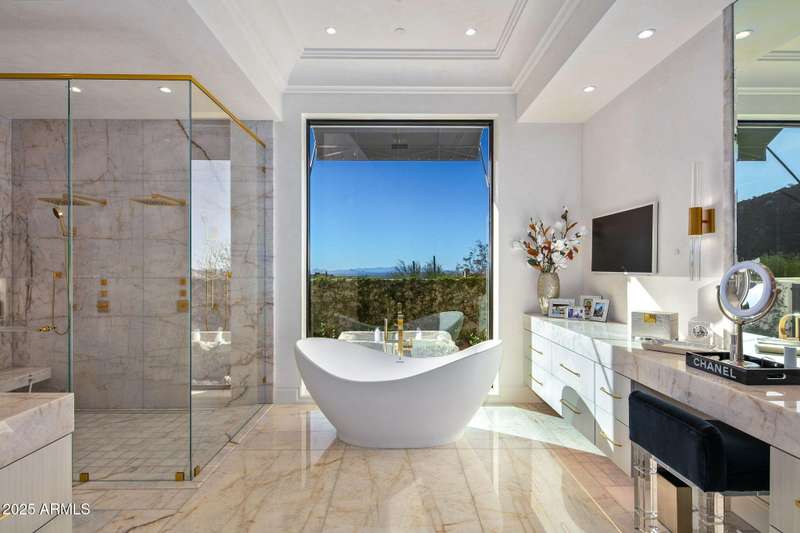 SILVERLEAF GOLF MEMBERSHIP OPPORTUNITY AVAILABLE! Discover an exceptional estate nestled in Silverleaf's Upper Canyon, boasting breathtaking mountain and city vistas. Situated on a rare near-level 2.15-acre lot, this property features expansive grounds with meticulously manicured gardens, offering an array of outdoor entertaining possibilities. Revel in the full outdoor kitchen with a pizza oven, elevated seating area, fire pit, and resort-style pool and spa. This single-level home spans 10,248 square feet and encompasses 5/6 bedrooms, 6.5 bathrooms, along with a dedicated office with bathroom or potential 6th bedroom. A separate detached guest casita adds to the allure. Unparalleled renovation by Salcito Custom Homes and Salcito Design Group...