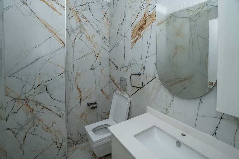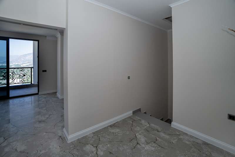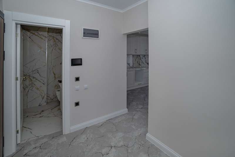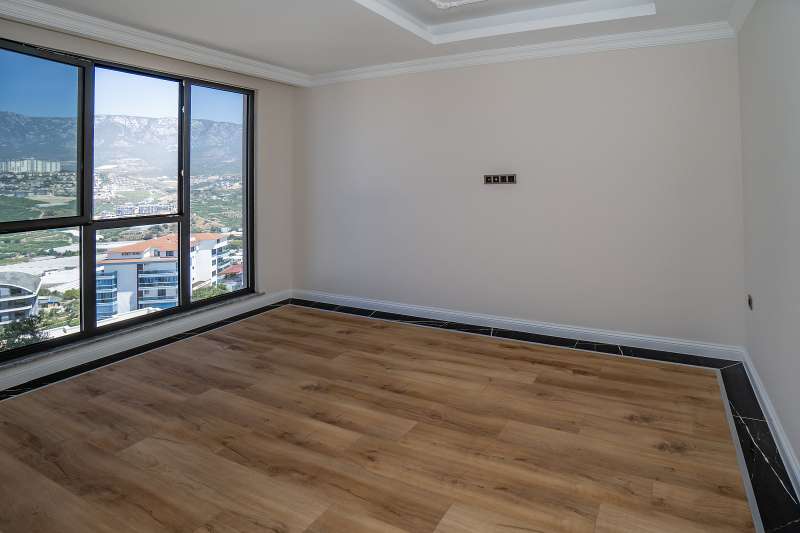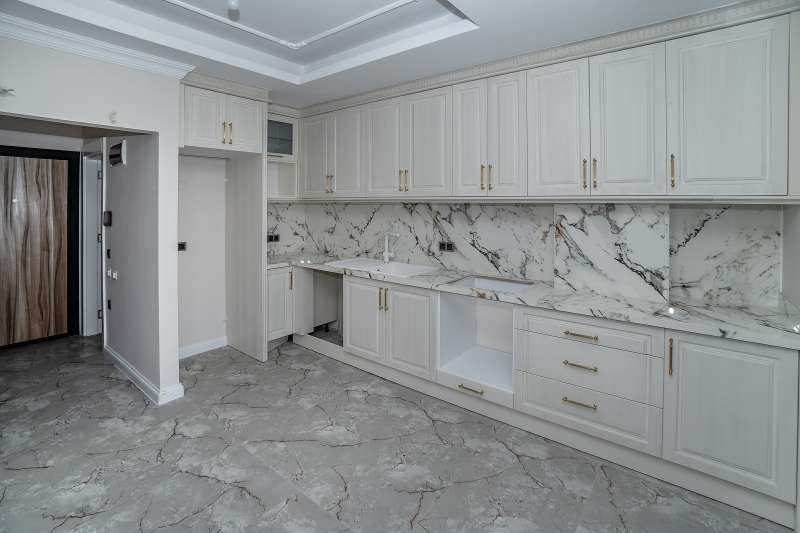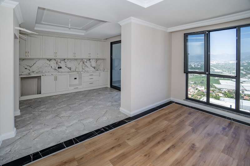 Apartments for sale in Alanya consist of a living room, open-plan kitchen, bathroom and en-suite bathroom, balcony, terrace, storage room, and bedrooms. The luxury apartments have air conditioning, built-in kitchen appliances, smart home system, satellite TV, shower cabin, bathtub, laminate and ceramic flooring.