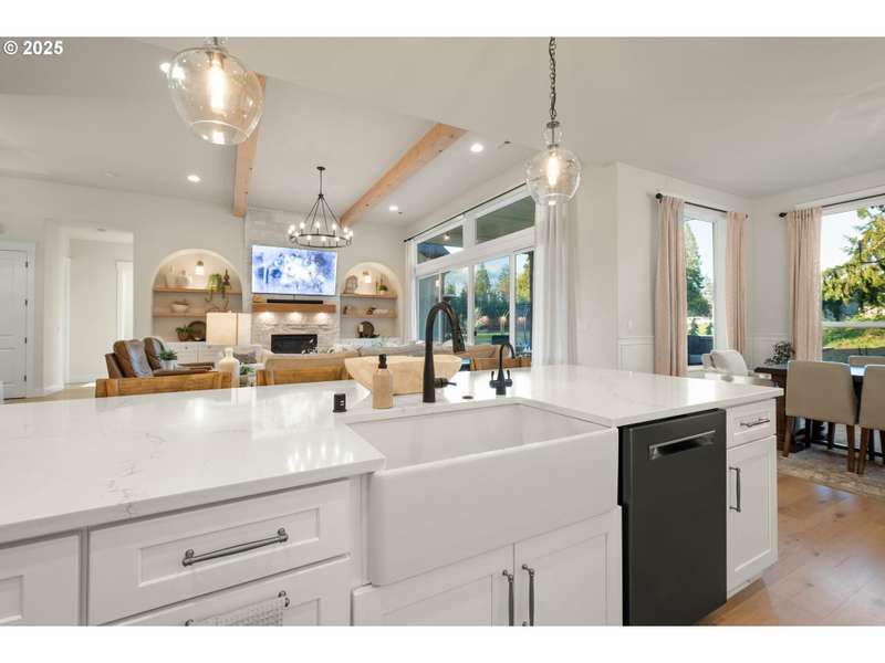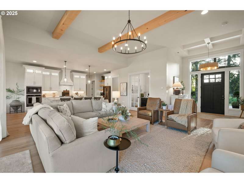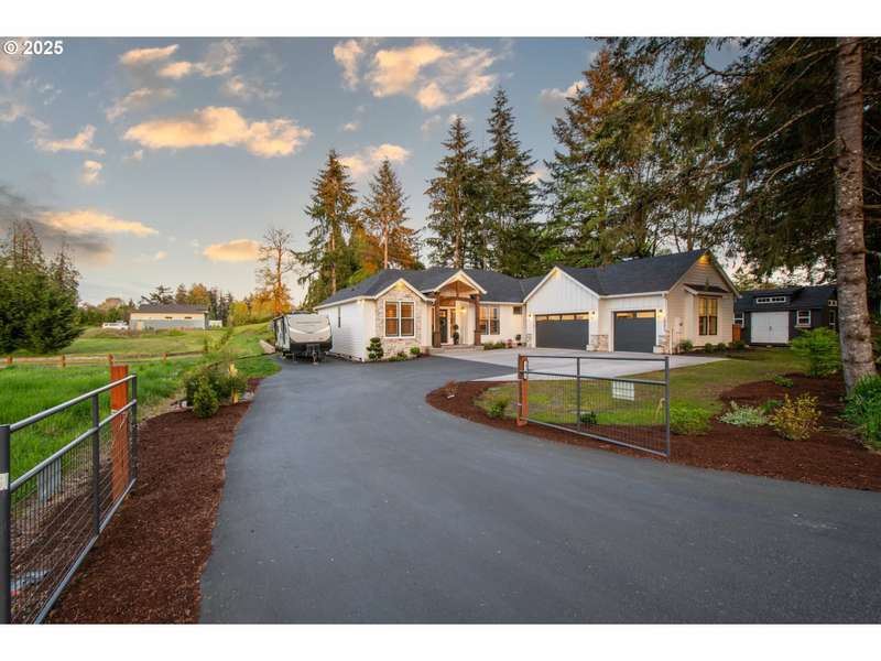 3 bedrooms plus office all on one level! 1/2 Acre in Ridgefield close in! This Home is Loaded with extras/upgrades! Builders personal home too many upgrades to list! A must See! Multi level ceilings, Great Room w/beamed ceilings, built-ins, floating shelves, fireplace and custom lighting throughout. Island kitchen w/Quartz counters, gas cooktop, butlers pantry w/slab Quartz, white oak hardwood floors throughout main living areas. Kitchen nook area with hardwood, wainscotting & French Doors to office w/wall accents. Laundry room w/butcher block counters, built-ins plus sink. Top of the line Sauna with shower, T&C Knotty Pine Patio soffits, raised Garden beds with drip system. Finished 3 car garage with attic storage, EFA w/heat pump & Hybrid water heater. Primary Suite w/boxed beamed ceilings, freestanding tub & tile walk-in shower, Built-ins in closet, central vacuum, 200 Sqft storage shed. The list goes on!