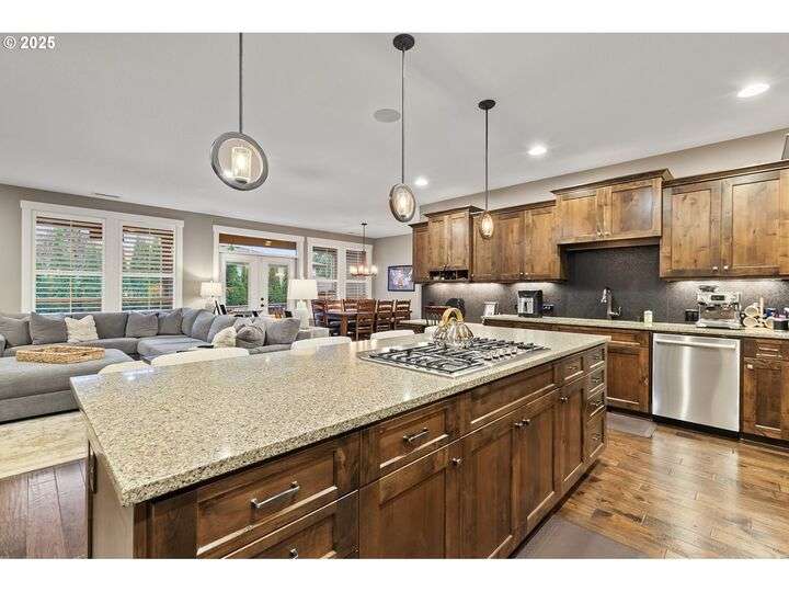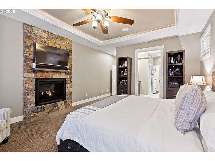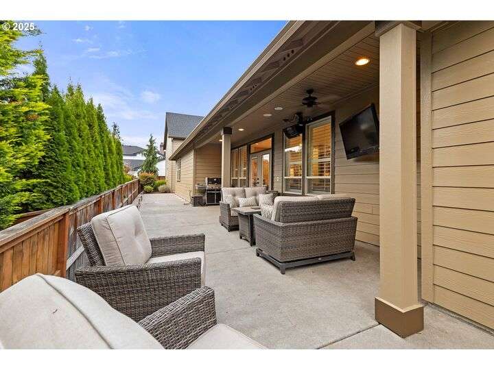 Lifestyle calls in this one of a kind Felida home! Main level living in this beautiful luxury home with an attached extra deep 3 bay garage and a detached 1456 sq ft luxury shop. Coveted Felida community, walk to parks, nearby local eateries, salon & Barre fitness! This home boasts 4 bedrooms on the main, plus an upper bonus room, including 2 bedrooms with attached bathrooms. Extras everywhere including built in vacuum, abundant windows with plantation shutters & 10' ceilings. Relaxing primary suite with a gas fireplace and private door to patio. Attached bathroom with soaking tub, 6ft tile shower and walk in closet. Gourmet Kitchen with butler's pantry with wine fridge, double oven, & eating island. Walk in pantry with extra refrigerator. Inviting great room with stone wall & custom built ins with a must have cozy gas fireplace! Upstairs enjoy a 425 sf bonus room with incredible reclaimed barnwood walls. A bar area with sink, mini fridge and microwave as well as bar counter seating for the ultimate entertaining. Hardwood floors complete the room perfectly! Outside enjoy an extra-large patio with covered area that includes lighting, heat, and a TV. Firepit & prewired for a hot tub! Fully fenced yard including side yard for games or adding a garden! The gem of this property is the 28'x 52' detached shop! Soaring ceilings, extra tall overhead door, bathroom with shower, hot water tank, floor drain, RV hook ups for power (50 amp) and sewer, shop has it's own 200 amp service, and custom storage. Home's exterior freshly painted! Ask to see the home's features list & watch the virtual tour for more photos!