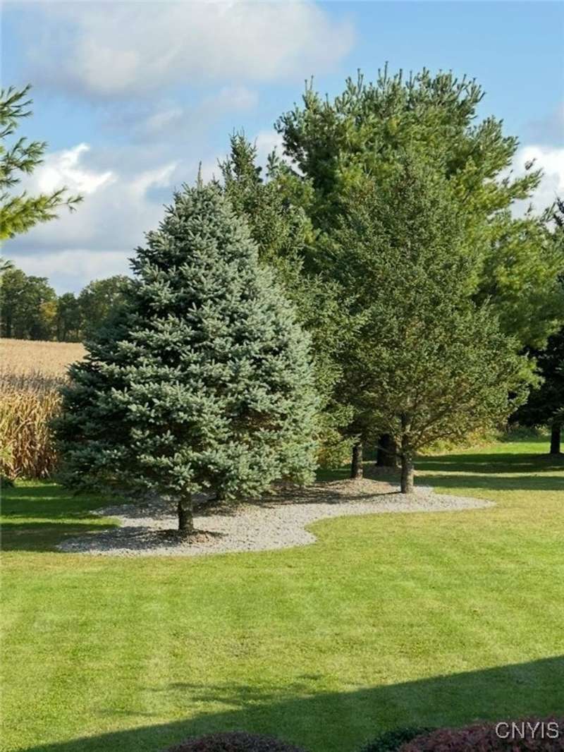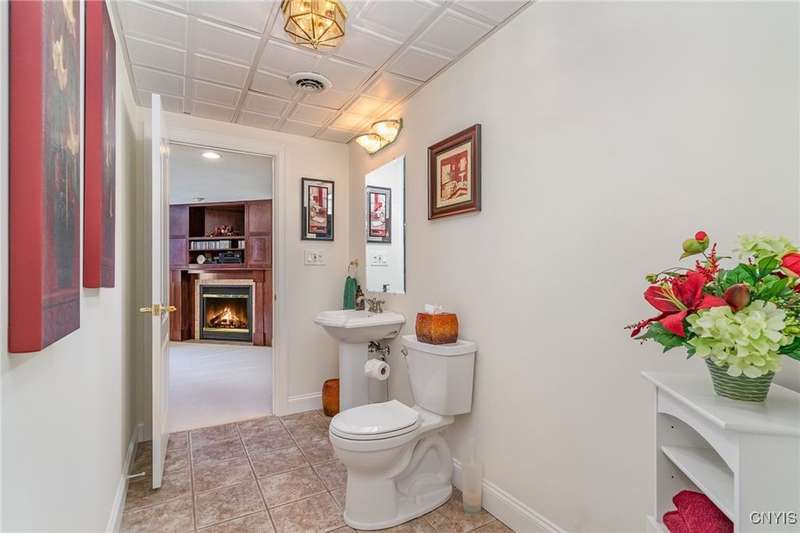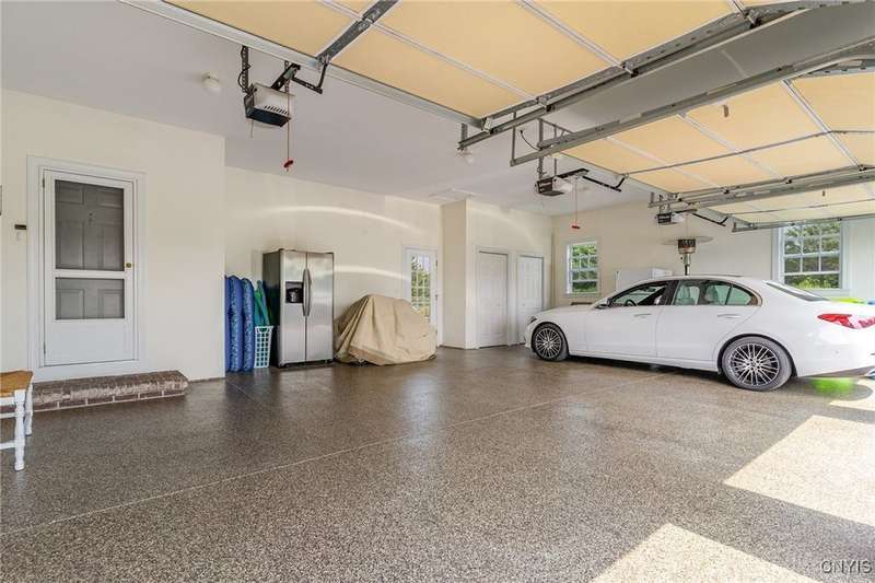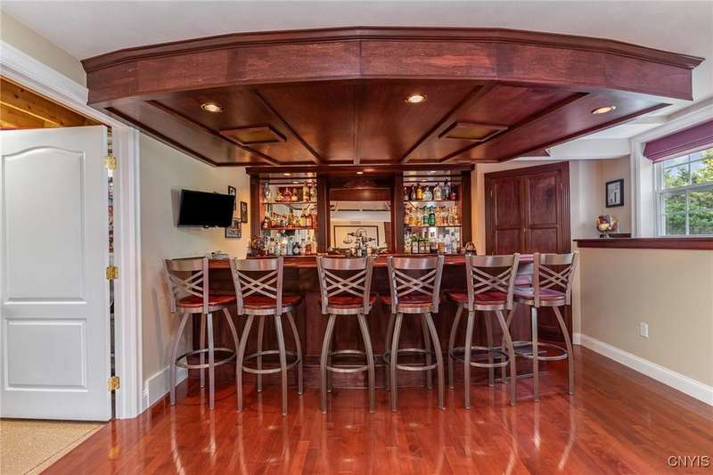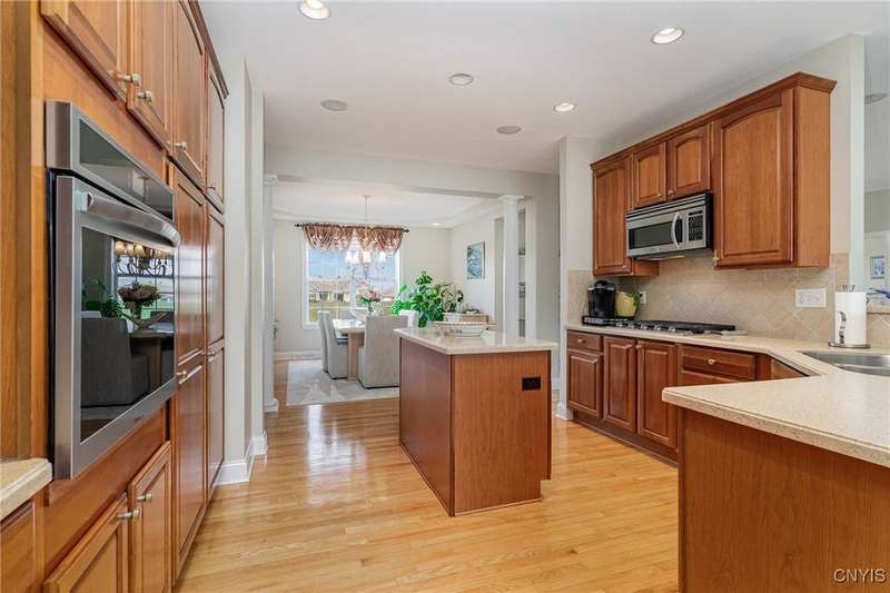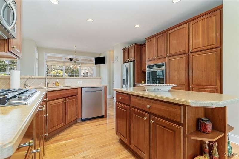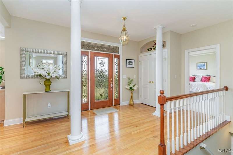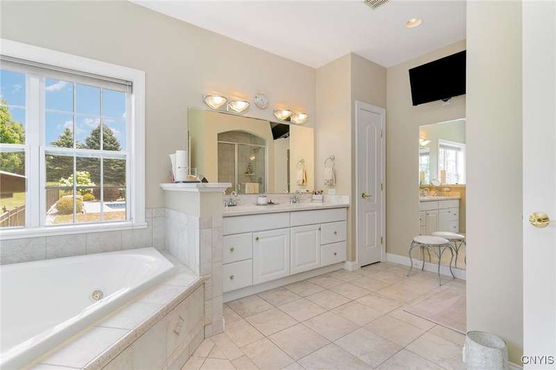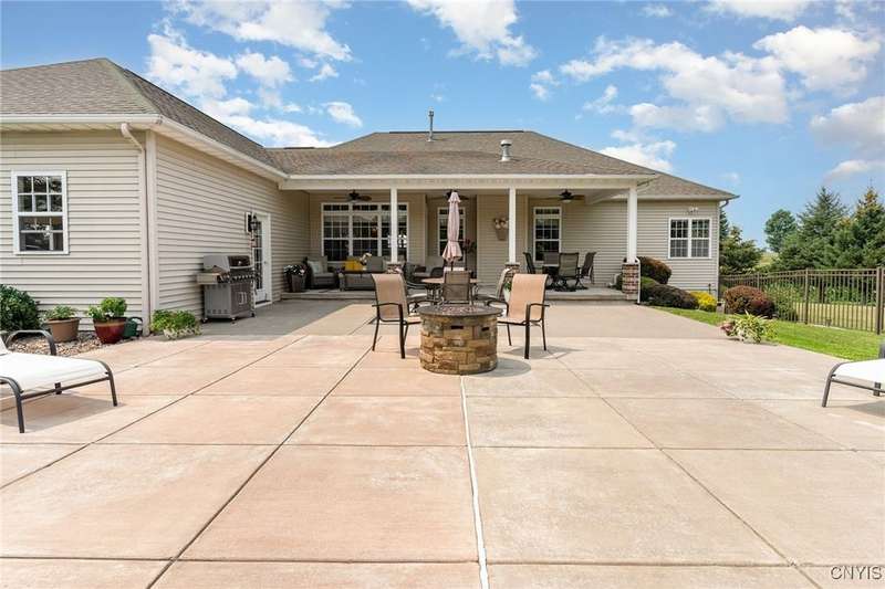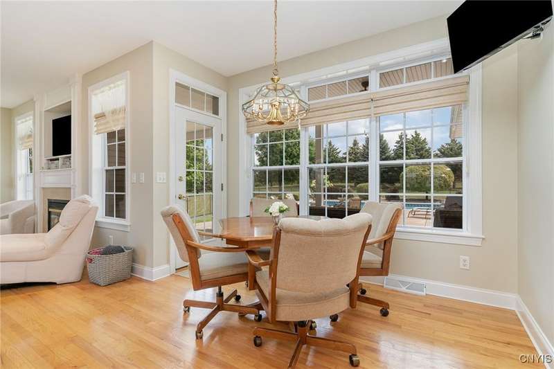 This exceptionally well-maintained custom-built home sits on nearly 2 acres of beautifully landscaped, tree-lined property, offering a rare combination of privacy, quality, and thoughtful design. Constructed with 2x6 framing and 9-foot ceilings, every detail was carefully considered for comfort and style.Step inside to a bright and airy floor plan, where the large foyer welcomes you into a spacious living room featuring gleaming hardwood floors, a gas fireplace, and surround sound for music and TV. The formal dining room is ideal for both quiet dinners and entertaining, highlighted by a tray ceiling and recessed lighting. The chef's eat-in kitchen is equipped with cherry cabinetry, a new French door stainless steel refrigerator, a new electric oven, dishwasher, microwave, and a five-burner gas cooktop. Enjoy views of the expansive 20x40 heated inground pool and extended patio area?perfect for outdoor entertaining or peaceful relaxation. The first-floor laundry room includes cabinetry, a utility sink, and a closet for added storage and functionality. The luxurious owner's suite features two large walk-in closets, a spa-like bath with double sinks, a glass-door shower, jetted Jacuzzi tub, linen closet, and large windows overlooking the private, treed lot and pool area. The finished lower level adds 712 square feet of additional living space, included in the total square footage. This inviting area features a spacious family room complete with surround sound, a large-screen TV/projector, and a cozy fireplace?ideal for movie nights or relaxing with guests. A custom bar with six matching barstools, built-in wine cooler and refrigerator, and extensive cabinetry and shelving makes it a perfect space for entertaining. The full basement also offers a half bath, a dedicated exercise area, generous storage, and a convenient stairway leading up to the oversized 3.5-car garage. The exterior is equally impressive, with over 30 evergreen and blue spruce trees offering natural privacy and red maples lining the driveway. This home is the perfect blend of refined living, comfort, and outdoor enjoyment. Everything is on 1 floor, if you like or need one floor living space!