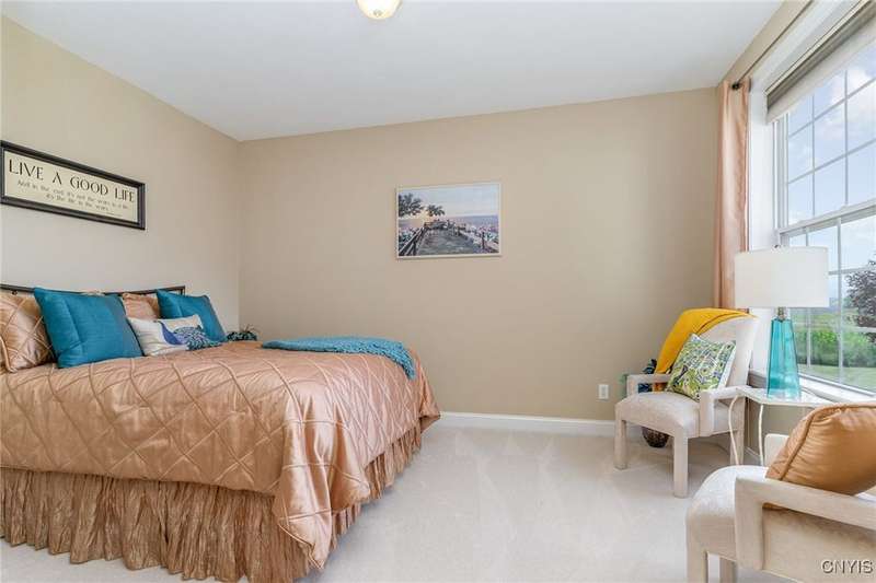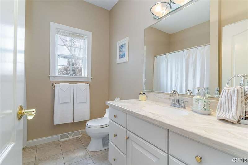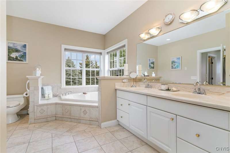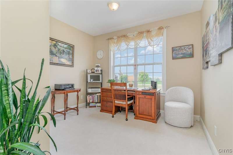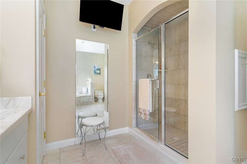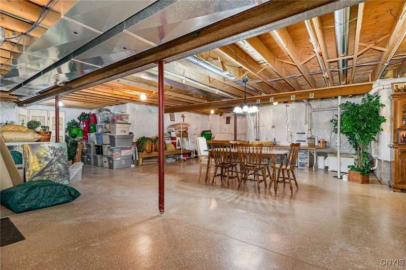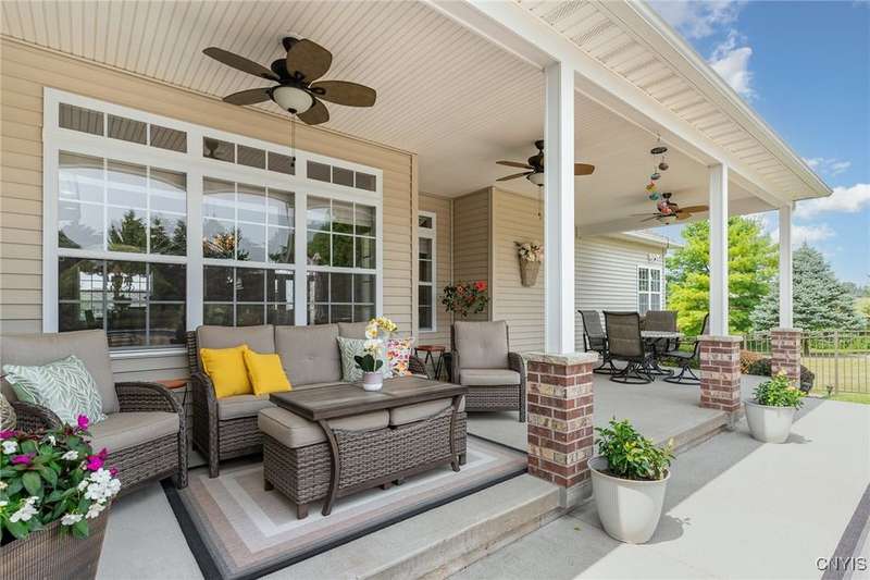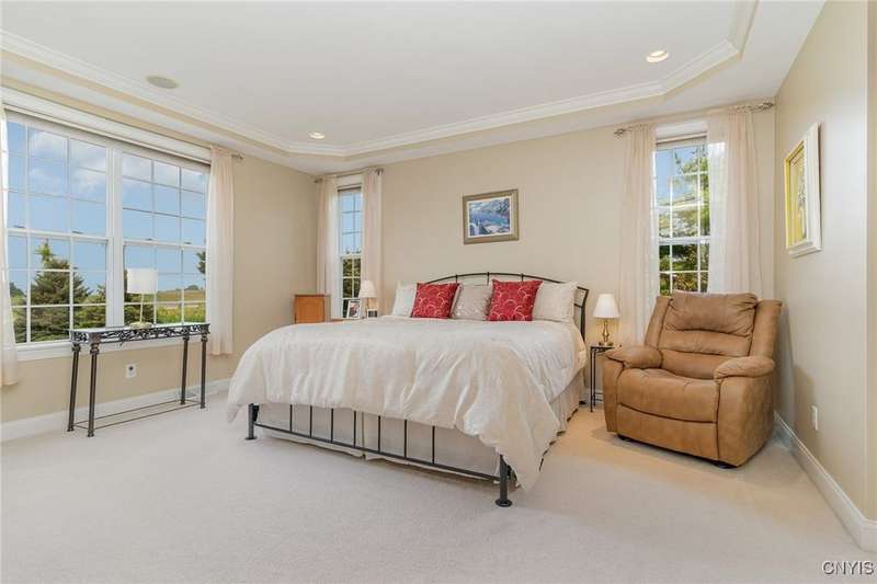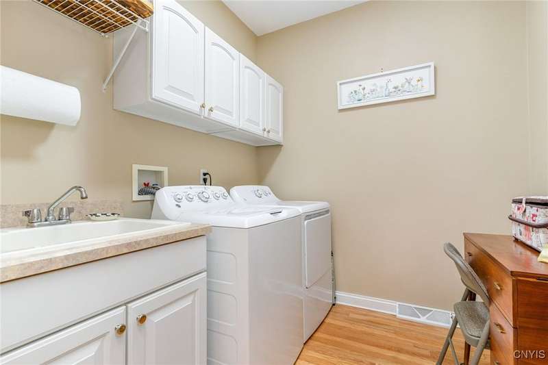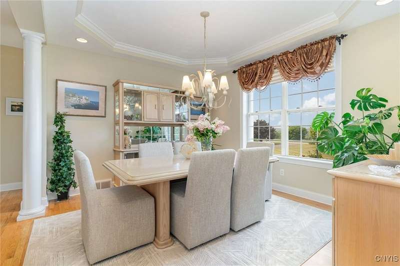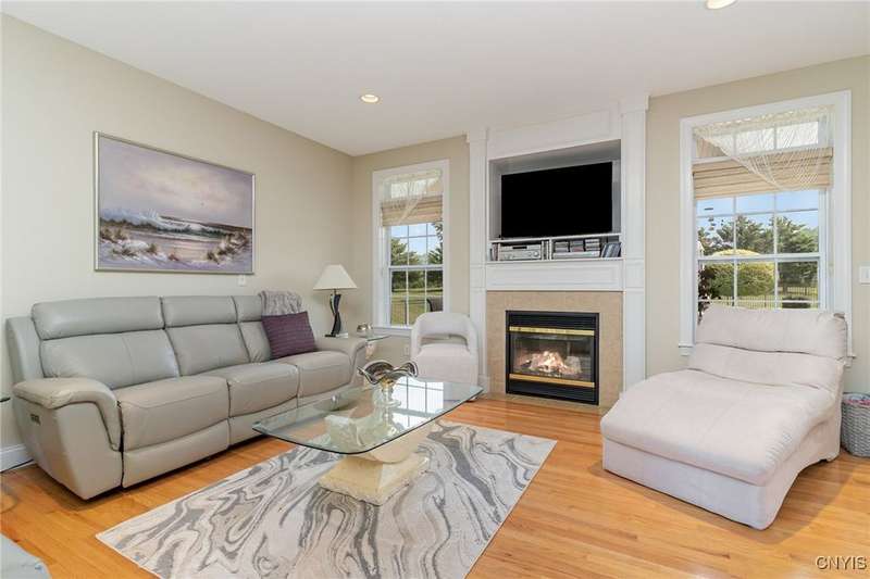 This exceptionally well-maintained custom-built home sits on nearly 2 acres of beautifully landscaped, tree-lined property, offering a rare combination of privacy, quality, and thoughtful design. Constructed with 2x6 framing and 9-foot ceilings, every detail was carefully considered for comfort and style.Step inside to a bright and airy floor plan, where the large foyer welcomes you into a spacious living room featuring gleaming hardwood floors, a gas fireplace, and surround sound for music and TV. The formal dining room is ideal for both quiet dinners and entertaining, highlighted by a tray ceiling and recessed lighting. The chef's eat-in kitchen is equipped with cherry cabinetry, a new French door stainless steel refrigerator, a new electric oven, dishwasher, microwave, and a five-burner gas cooktop. Enjoy views of the expansive 20x40 heated inground pool and extended patio area?perfect for outdoor entertaining or peaceful relaxation. The first-floor laundry room includes cabinetry, a utility sink, and a closet for added storage and functionality. The luxurious owner's suite features two large walk-in closets, a spa-like bath with double sinks, a glass-door shower, jetted Jacuzzi tub, linen closet, and large windows overlooking the private, treed lot and pool area. The finished lower level adds 712 square feet of additional living space, included in the total square footage. This inviting area features a spacious family room complete with surround sound, a large-screen TV/projector, and a cozy fireplace?ideal for movie nights or relaxing with guests. A custom bar with six matching barstools, built-in wine cooler and refrigerator, and extensive cabinetry and shelving makes it a perfect space for entertaining. The full basement also offers a half bath, a dedicated exercise area, generous storage, and a convenient stairway leading up to the oversized 3.5-car garage. The exterior is equally impressive, with over 30 evergreen and blue spruce trees offering natural privacy and red maples lining the driveway. This home is the perfect blend of refined living, comfort, and outdoor enjoyment. Everything is on 1 floor, if you like or need one floor living space!