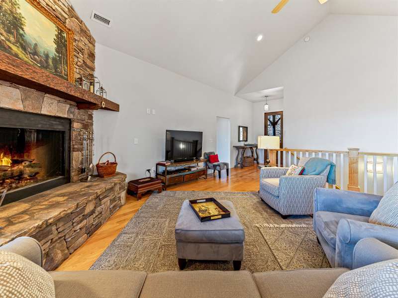 Escape to your ideal mountain retreat, where comfort, privacy, and nature come together in harmony. This stunning custom home is just a short distance from the Bear Lake Clubhouse and amenities. Designed for effortless mountain living, this spacious home features four generously sized en-suite bedrooms, perfect for hosting family and guests. Step inside to discover vaulted ceilings, an inviting open floor plan, and the warmth of both indoor and outdoor fireplaces. The main level seamlessly connects to a large covered deck that showcases breathtaking year-round mountain views, with views of the lake in winter. The lower level offers even more space to relax, featuring two additional en-suite bedrooms, a spacious recreation room, a screened porch, and abundant storage. An attached single-car garage adds convenience, making this home as practical as it is beautiful. With its exceptional layout and stunning setting, this home is a true mountain sanctuary. Schedule your showing today!