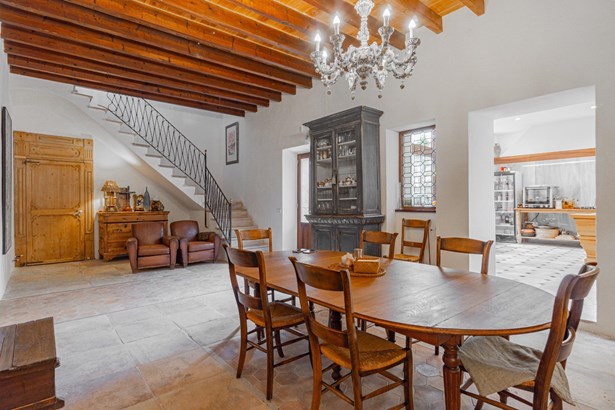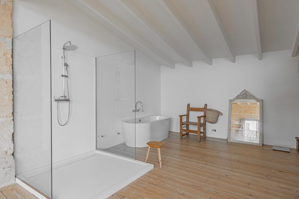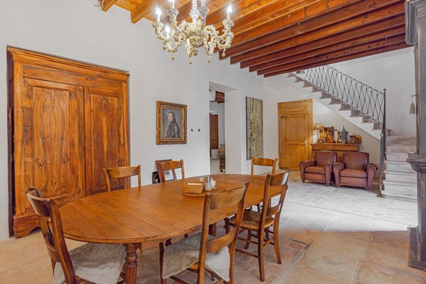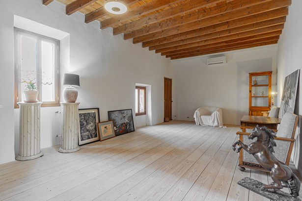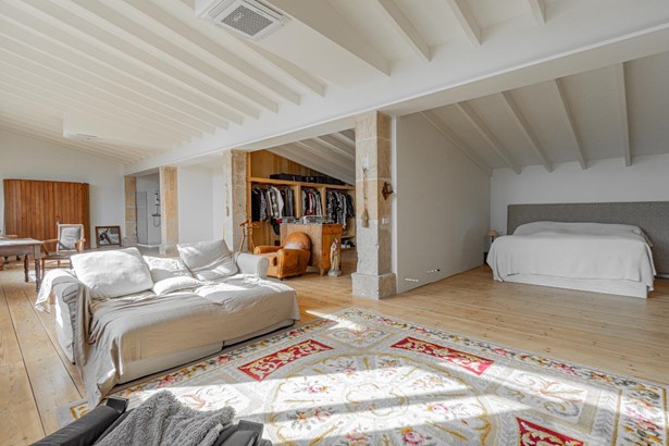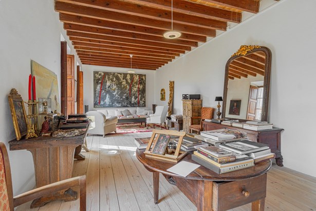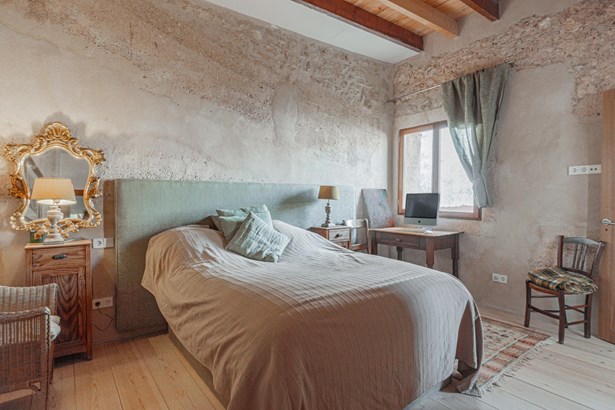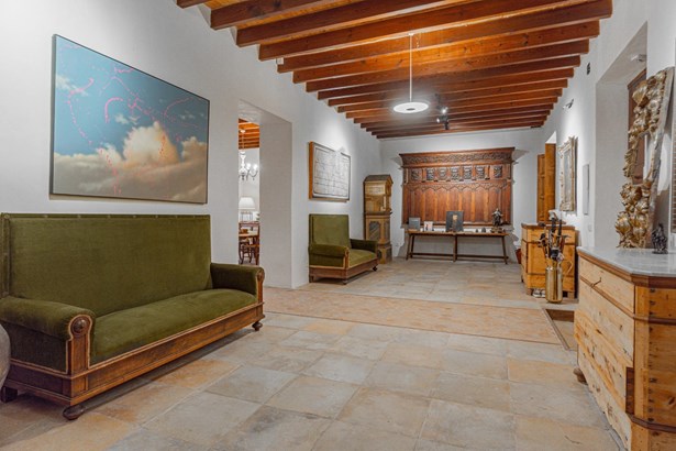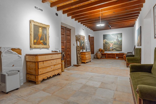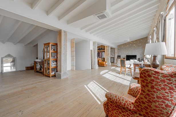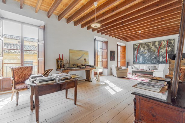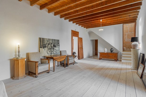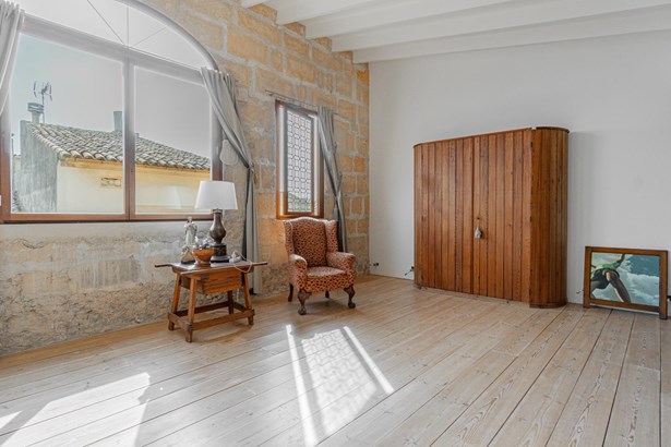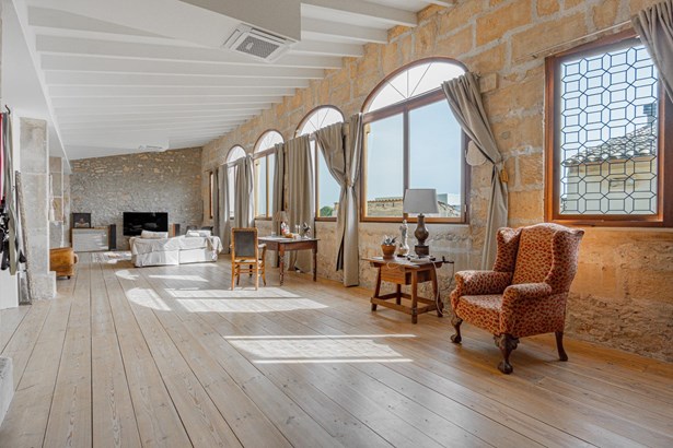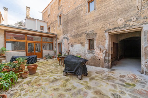 Exclusive Stately Home in the Heart of Porreres~~This exclusive and renovated stately home is located on a pedestrian street in the center of Porreres, offering easy access to all services, just 30 minutes from the coast and only 28 minutes from Palma Airport.~~With 512 m² of built area distributed over three floors, this property stands out for its spaciousness and brightness. The outdoor patio, featuring stone flooring and rustic details, provides a versatile space where a garden, swimming pool, or jacuzzi could be installed.~~On the ground floor, a spacious entrance hall leads to a cozy living room with direct access to a large dining room, which connects seamlessly to a traditionally designed and fully equipped kitchen, opening onto a charming patio.~~This floor also includes a guest toilet, an independent laundry room, and a vaulted garage with space for multiple vehicles.~~The first floor features an open-plan area with a living room, library, and open office space. Additionally, there are two double bedrooms, each with a walk-in closet and an en-suite bathroom. One of the bedrooms has access to a private terrace overlooking the interior patio.~~The second floor boasts a large open-plan attic space designated as the master bedroom, including a walk-in closet, lounge area, relaxation zone, and a bathroom. The property retains original elements such as exposed stone walls, high ceilings with wooden beams, and restored noble carpentry.~~Additionally, it features double glazing, an efficient climate control system, and a private elevator.