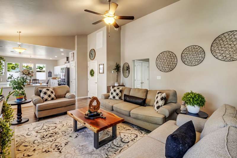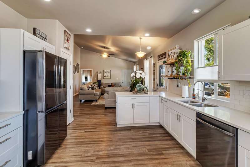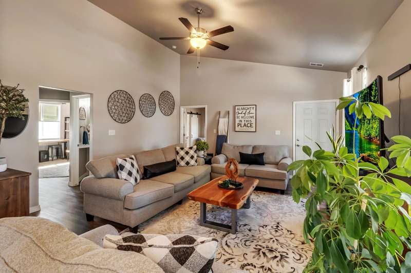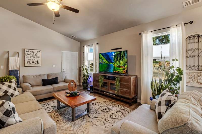 Are you looking for a home with natural light, spacious living, and well-designed features? This beautiful home includes ample windows to allow for a bright, cheery atmosphere. The high ceilings and large kitchen are well designed for entertaining and gathering with friends. White cabinets and quartz countertops give this home a sleek, clean look. The master bedroom is adorned with barn doors, a huge walk-in closet, and a wonderfully designed bathroom. Not to mention the solar system to keep your home energy efficient. Schedule your showing today for this beautiful home.