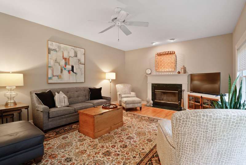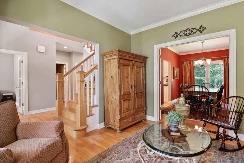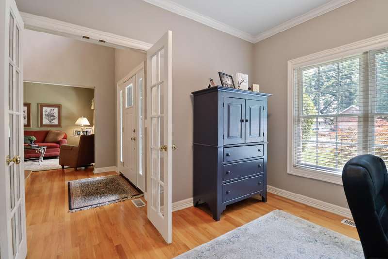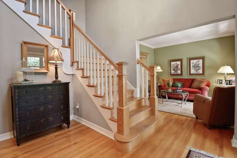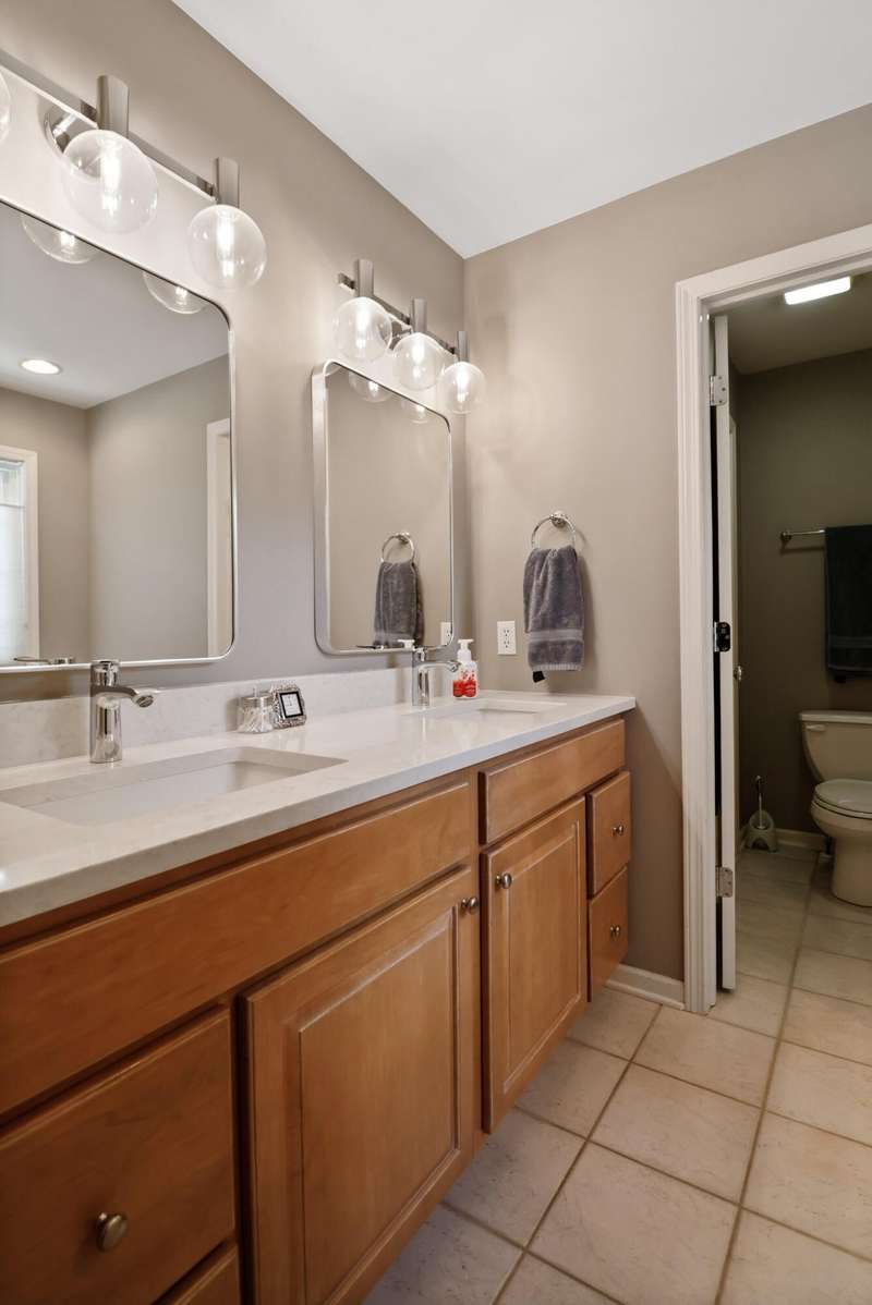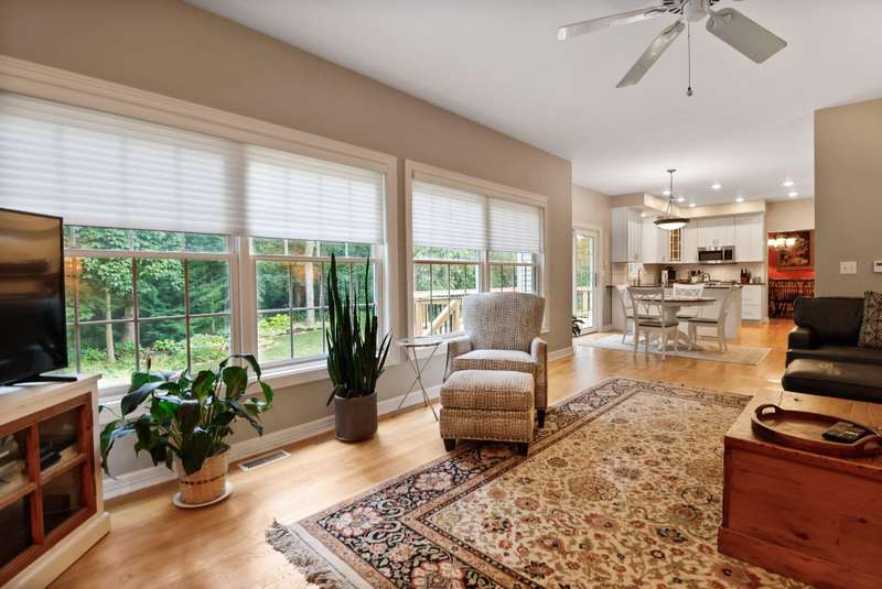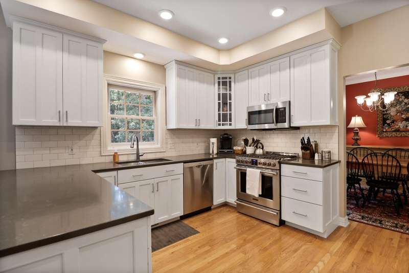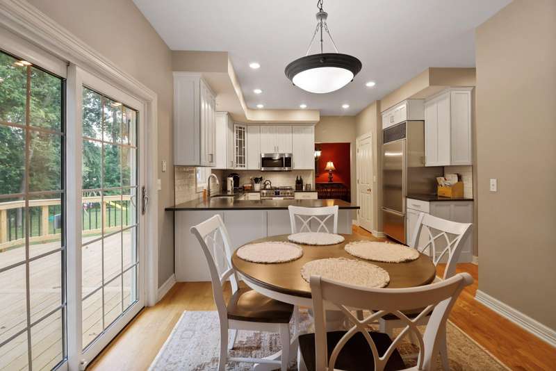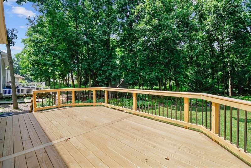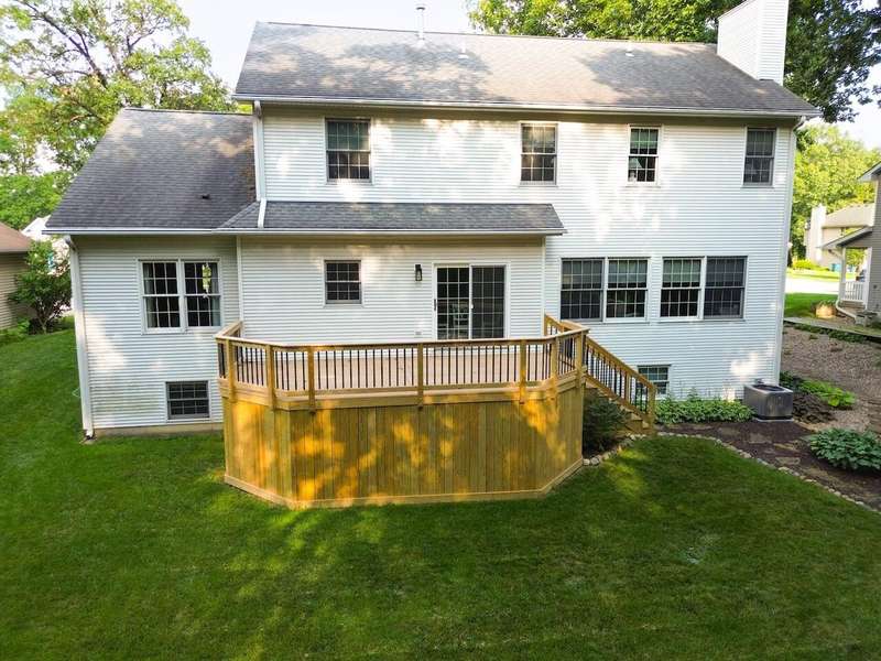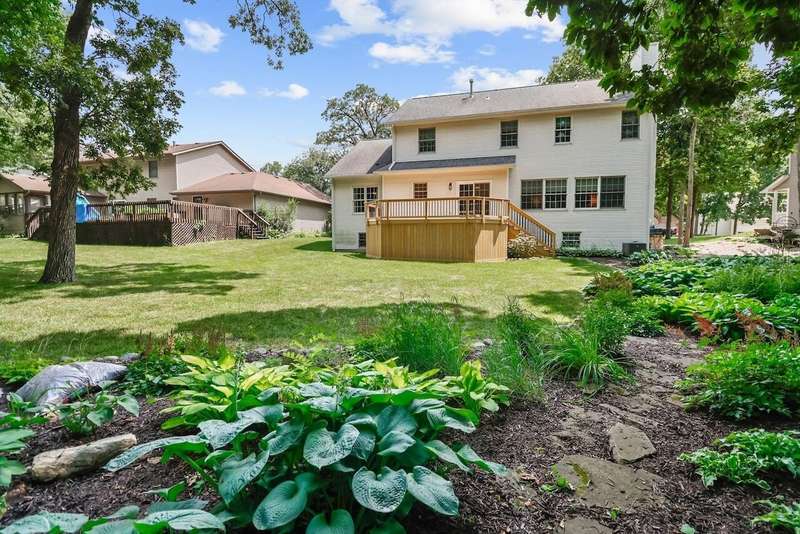Welcome to this beautifully updated 4-bedroom, 2 full/2 half bath home nestled on a peaceful, wooded lot. Major updates include new deck (2025), AC (2023), furnace (2018), roof (2010), and sellers providing home warranty for complete peace of mind! Featuring a grand 2-story foyer, formal dining room, private office, and two spacious living areas, this home is perfect for both everyday comfort and entertaining. The chef's kitchen boasts quartz counters, custom SubZero refrigerator, and high-end appliances, while the main-level laundry/drop zone adds convenience. Upstairs, enjoy four large bedrooms, including a serene primary suite with wooded views, large walk-in closet, and bathroom with updated quartz countertops. The finished basement offers a wet bar, half bath, and ample storage. Outside, relax on the brand-new deck surrounded by mature trees and landscaped grounds. A rare blend of space, style, and privacy.
