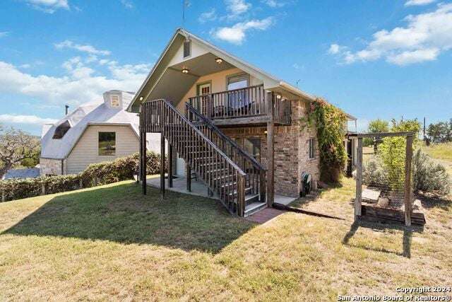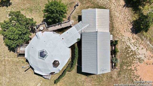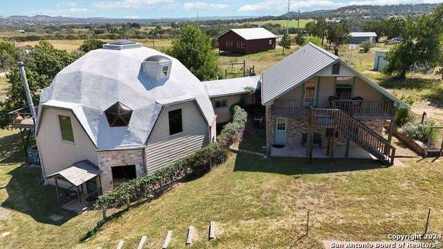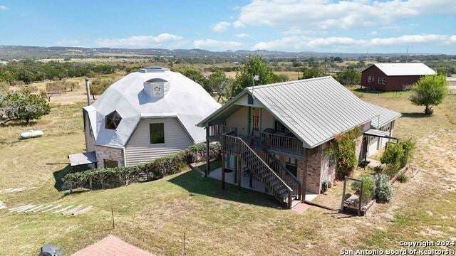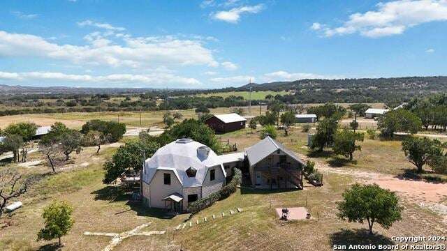 Nestled in Cedar Hills, this 4.24 picturesque acres just six miles from the heart of Main Street, Fredericksburg, this one-of-a-kind dome-shaped 5 bedroom, 5 and a half bath, 4,426 square foot residence offers a remarkable blend of modern comfort and distinctive architectural design. Surrounded by the natural beauty of the Texas Hill Country, this property is a serene retreat, ideal for both personal enjoyment and investment opportunities. Step into the main living area, where a stunning atrium welcomes you with its natural light and lush greenery, creating an inviting ambiance that feels both spacious and cozy. The thoughtful layout includes a private primary suite on the first floor, complete with a charming porch that invites you to sip your morning coffee while enjoying the tranquil views. The primary bathroom is a spa-like oasis, featuring a luxurious clawfoot bathtub and a separate shower, providing the perfect escape for relaxation after a long day. Venture upstairs to discover the open and airy kitchen and dining area, designed to overlook the atrium and bathe in natural light. This communal space is perfect for entertaining, with ample room to create culinary masterpieces. Ascend to the third floor, where you'll find two additional bedrooms that offer versatility for guests, a home office, or creative pursuits. Accessed through the garage, the separate guest home offers a delightful level of privacy for visitors. The first floor includes a full kitchen and dining area, one spacious bedroom, and a full bath, making it an ideal retreat. But the surprises don't end there! Ascend the outdoor upstairs patio to discover an additional guest room that features a cozy game room, a convenient kitchenette, and another separate bedroom with a full bathroom. This layout provides three distinct living areas, making it perfect for short-term rentals or as a unique vacation destination. The expansive 4.24-acre lot provides plenty of space for outdoor activities, gardening, or simply enjoying the stunning Texas sunsets. A utility shed on the property offers additional storage for tools or recreational equipment, further enhancing the convenience and utility of this unique home. With the possibility of short-term rentals, this property is not just a dream home; it's also a lucrative investment opportunity. Imagine welcoming guests from near and far to experience the charm and beauty of Fredericksburg while they enjoy the privacy and comfort of your unique dome-shaped home. This exceptional property combines artistic architecture, modern conveniences, and the allure of the Texas Hill Country, making it a rare find in today's market. Whether you're looking for a primary residence, a vacation retreat, or an investment property, this dome-shaped home with guest quarters offers endless possibilities. Don't miss the chance to make this extraordinary space your own-schedule a tour today and experience the magic of this unique Fredericksburg gem!