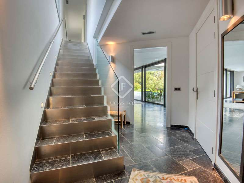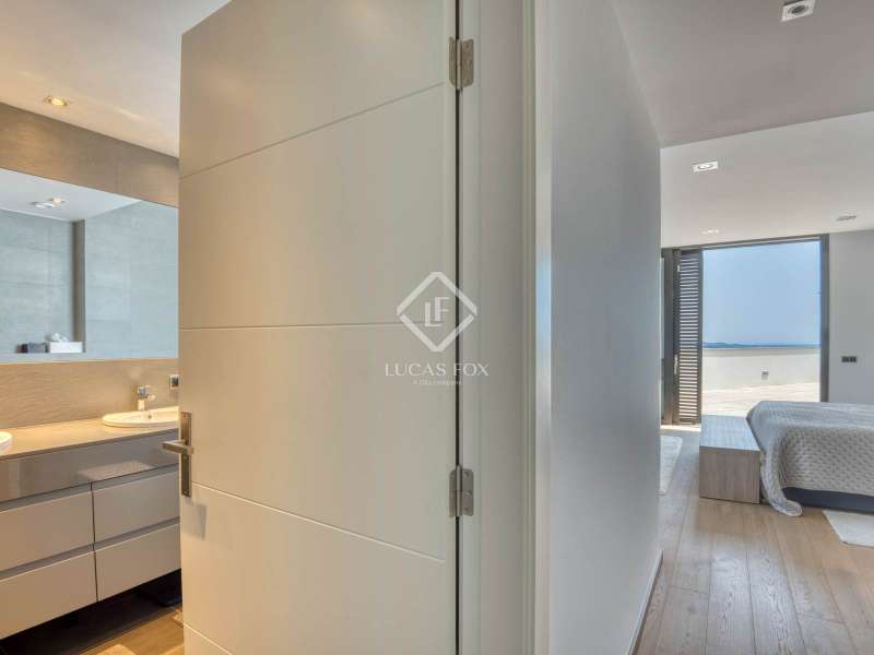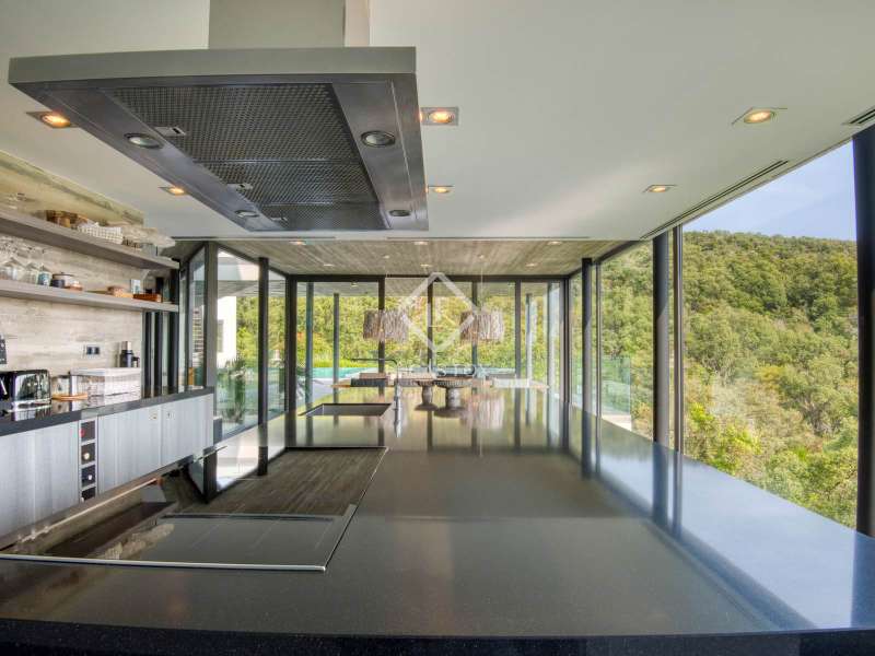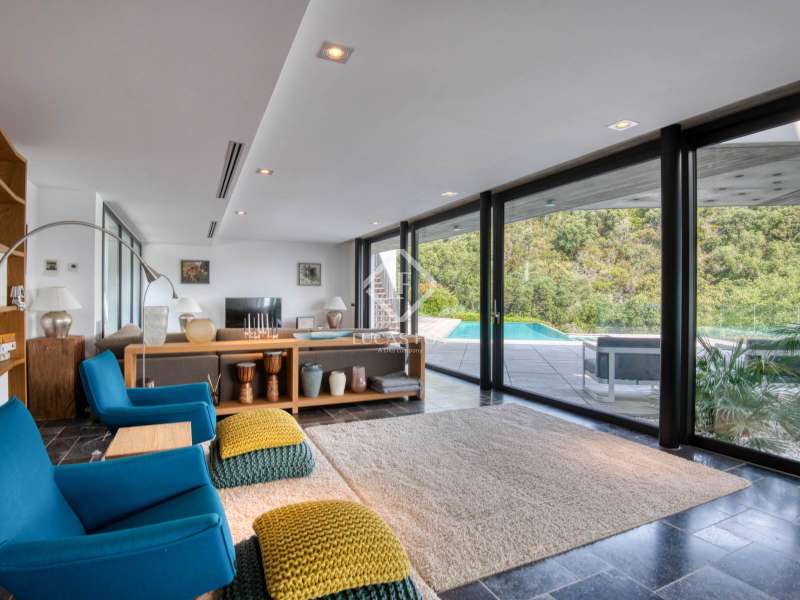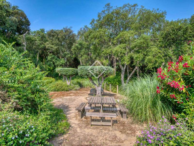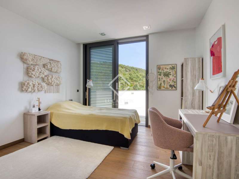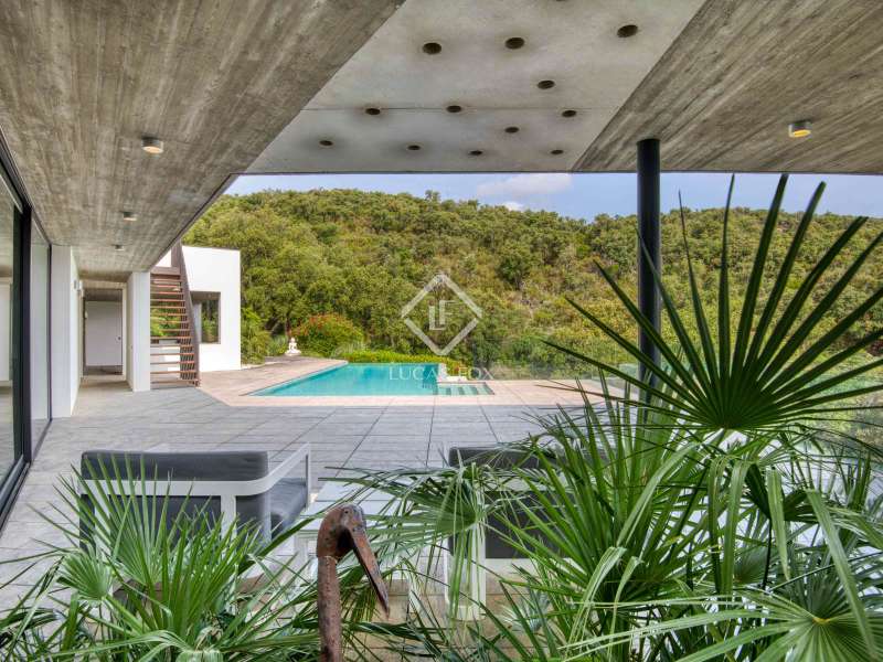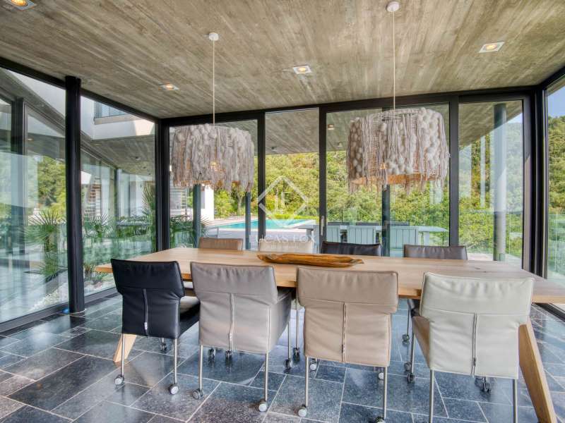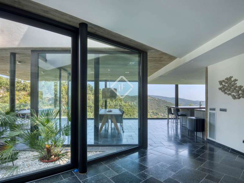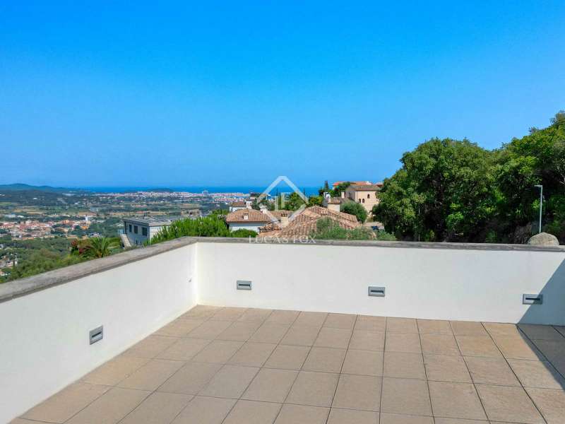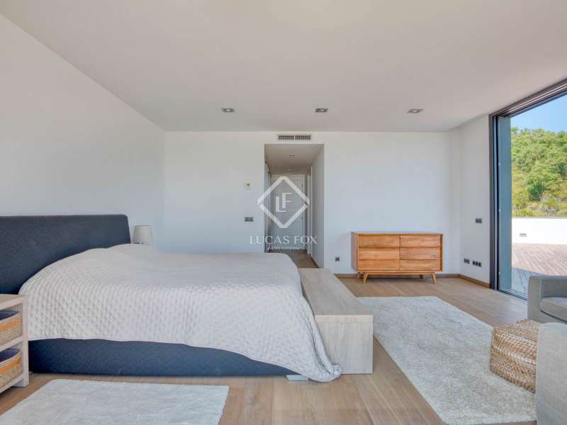 Lucas Fox exclusively presents this spectacular contemporary luxury villa located in Calonge, one of the most sought-after towns on the Costa Brava. Situated on a cul access-sac in a residential area surrounded by nature and tranquility, the property enjoys absolute privacy. It also boasts panoramic views of the sea, the mountains, and the natural park that stretches out directly opposite. It offers a carefully designed home spread over three floors. The main floor is dedicated to the day area, with a spacious living-dining room with two separate areas and an open-plan designer kitchen, all within an open-plan space of over 100 m² with stunning sea views. From here, there is direct access to a magnificent terrace with a porch, summer kitchen, heated pool , and utility area. The upper floor houses the night area, consisting of a luxurious main bedroom with a private bathroom and terrace, as well as three double bedrooms that share two complete bathrooms. Floor are the wine cellar, the home theater, and a large multipurpose room that can be used as a gym, games room , or study, with direct access to the garden. The property also includes a charming, fully independent guest apartment, consisting of a living-dining room with an open kitchen and access to a private terrace, a double bedroom , and a full bathroom . It is ideal for accommodating family or friends in complete comfort and privacy. The exterior offers an elegant Mediterranean garden , an infinity pool, several terraces, a summer kitchen and dining room , a covered garage with capacity for two cars and additional ramp space for up to five vehicles. This property has all the amenities of a modern, sustainable residence: solar panels and underfloor heating, among others. Calonge, with its perfect combination of sea, mountains, and heritage, has become one of the most exclusive areas for those seeking a second or permanent property on the Costa Brava. Its proximity to beaches like Sant Antoni and towns like Palamós and Platja d'Aro, along with the tranquility of its natural surroundings, make this location a unique enclave for enjoying a lifestyle that is both sophisticated and relaxed. Contact us for more information.