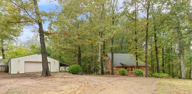 Charming log cabin in the woods with detached 30x30 workshop with attached 33x12 lean to storage space Corner lot, 1.5 acres Lovely front porch with swing, plus enclosed back porch and deck. So peaceful! Open floor plan with one bedroom down with full bath and primary up with private bath. Close to Arlington, I-40 and Hwy 385. Only minutes to shopping and dining. Just over the Fayette County Line Garage/workshop is detached and has approximately 900 sq feet, with power. Circular drive great spot for relaxing! All measurements are estimates Refrigerator and washer/dryer remain Some images have been virtually staged