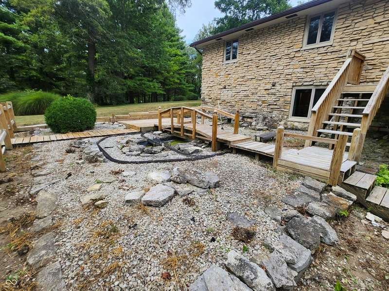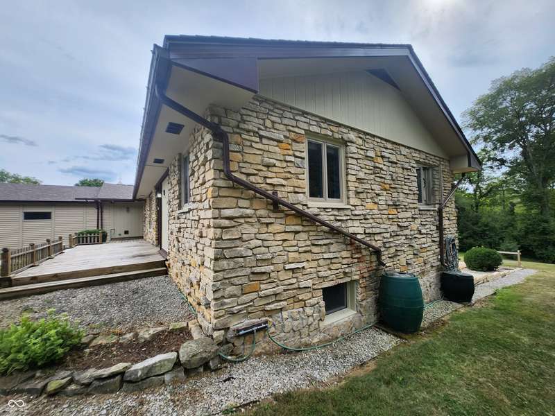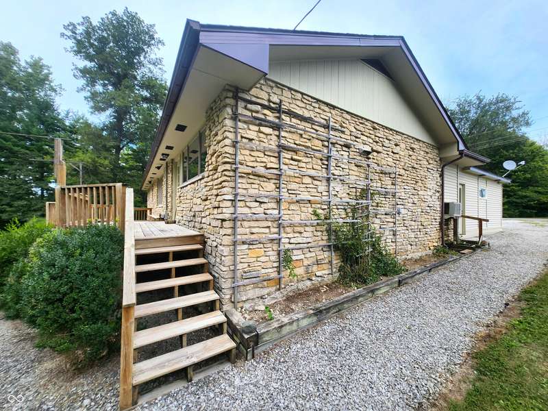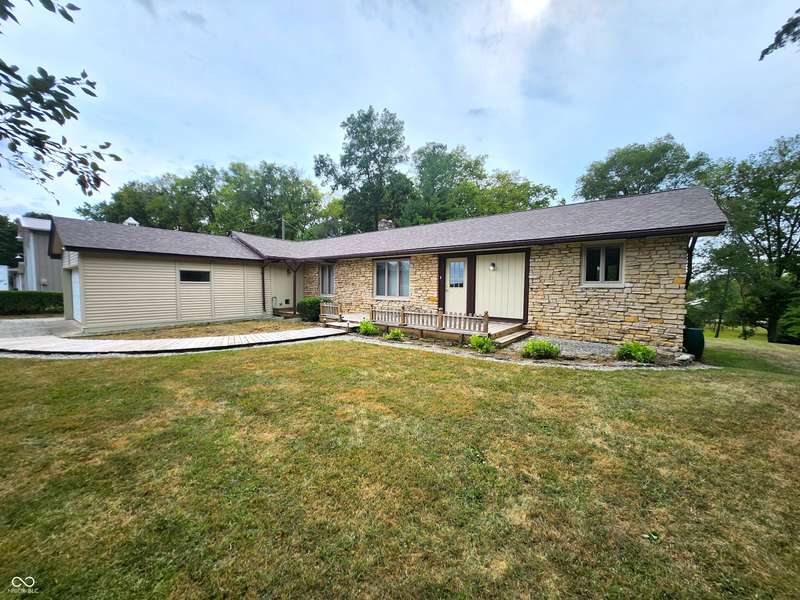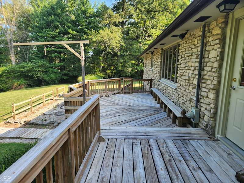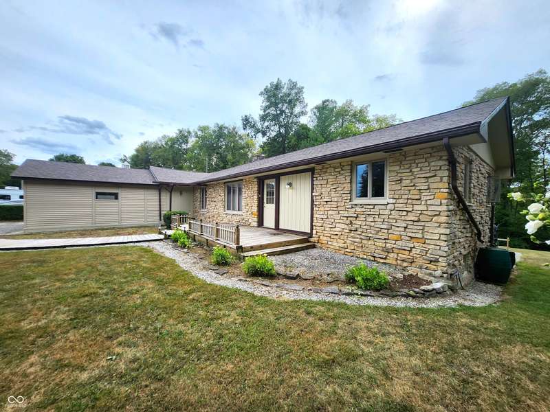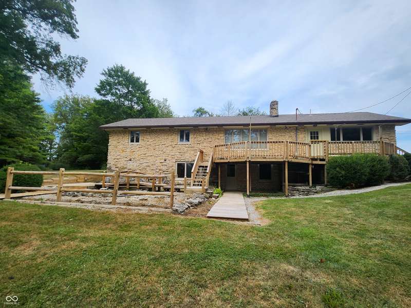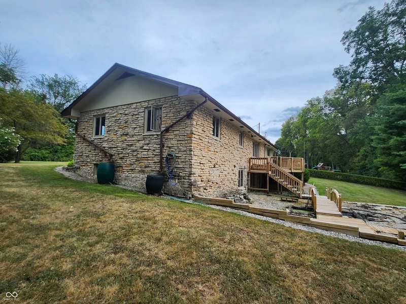 Fantastic opportunity awaits you in the countryside where you'll find this mid-century modern ranch over basement located on the outskirts of Saint Paul. This 1.5 acre estate property offers a breath of fresh air and is ready for your personal touch. The main level features a large formal living room and kitchen, both with access to the back yard and deck area. Step into the large kitchen with solid wood cabinets and walk-in pantry, extra counters for meal prep and still room for a dining table. The beautiful oak hardwood floors are reminiscent of days gone by while the oversized windows offer a great view of the natural landscape. Other main level rooms include a large Master BR, BR 2 and a full bath. Stepping down the oak stairs to the finished walk-out basement you'll find BR 3, full bath, laundry and large hobby room or office. The patio area includes a model train track. The forested perimeter of the yard features approximately 1/4 acre of virgin Indiana woodlands and approximately 1/8 acre of mature cultivated pine, all meticulously planted. This is a spacious home where memories have been made, just waiting for you to arrive and make your own.