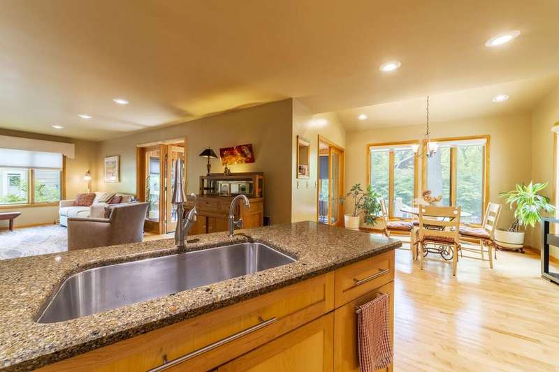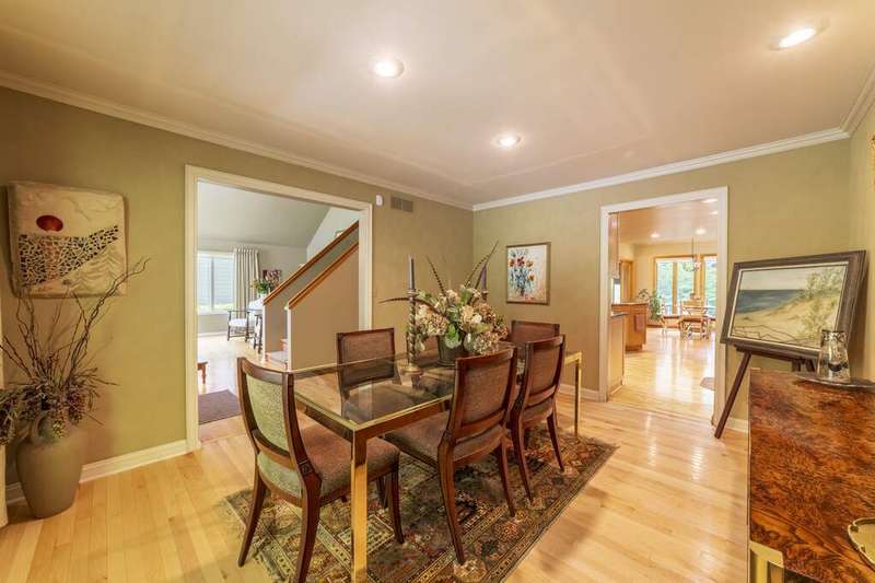 Stop looking, this is "the one!" Meticulously maintained and thoughtfully updated, this captivating family home is nestled in the heart of scenic Duneland Beach, just a few short blocks from the pristine shores of Lake Michigan. With an inviting open floor plan and rich maple hardwood flooring throughout, the residence boasts a gourmet kitchen featuring premium stainless steel appliances and ample prep space for cooking on luxurious Cambria quartz countertops. This host's dream home offers both a formal dining room and a spacious breakfast nook that flows seamlessly into a warm and inviting family room with fireplace. The flow continues as you step into the stunning four-season sunroom that is illuminated by skylights and finished with gorgeous flooring, which opens to a secluded patio--ideal for summer gatherings and al fresco dining. The main level also features a convenient laundry/mudroom area, accessed from attached 2 car garage with epoxy flooring. The finished basement provides exceptional flexibility with abundant storage, additional sleeping quarters and space for the perfect home office and/or exercise space. Start your mornings with coffee on the charming covered front porch, surrounded by elegant, low-maintenance landscaping. This highly sought after location is directly across from Duneland Beach Park, a short stroll to the local supper club, near tennis/ pickle ball/basketball courts, and most importantly, to exclusive beach access! Picture perfect and move-in ready this home is sure to suit your needs. So run, don't walk, and schedule your private showing today-this gem won't last!