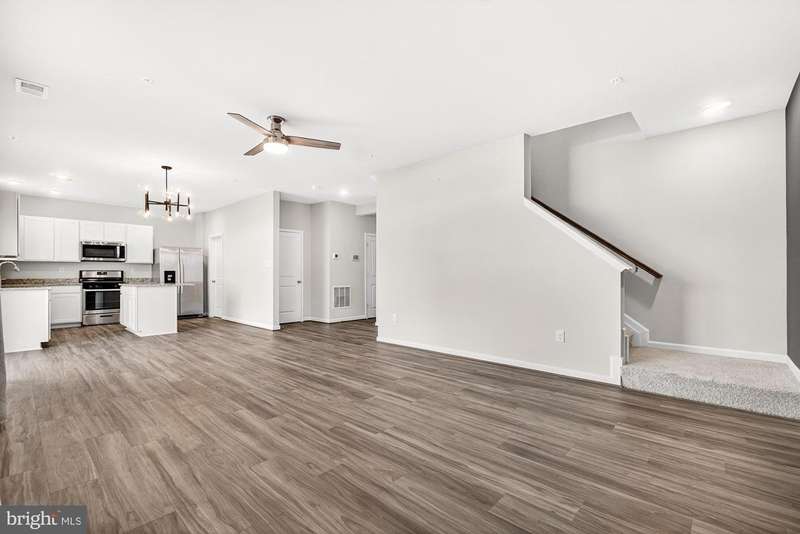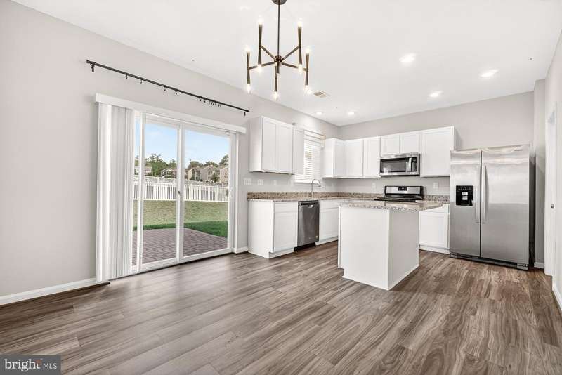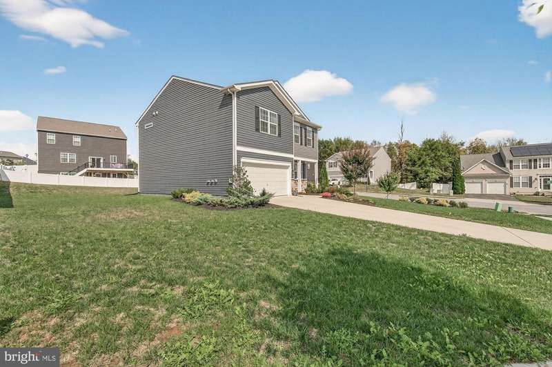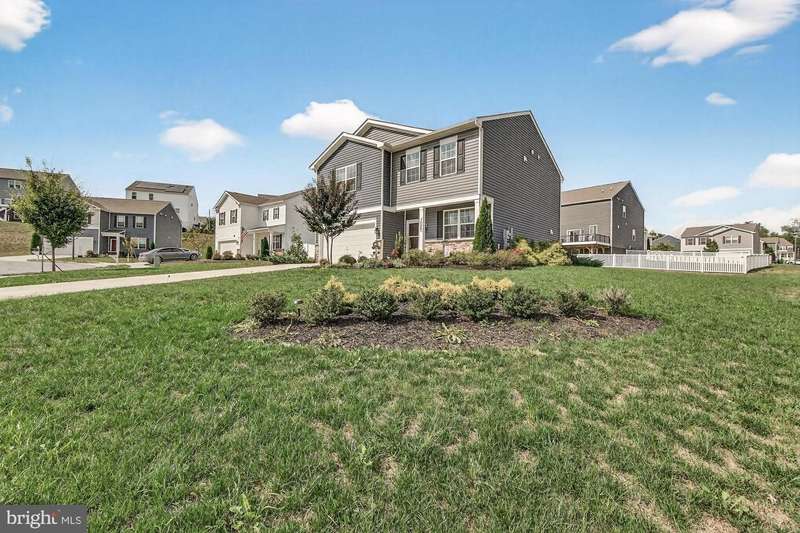 This Eastover model offers & formal model is affordable single-family living at its finest. Nestled on a desirable corner lot, the home features a welcoming full front porch and a brick patio-perfect for relaxing or entertaining. Inside, you'll find unique design finishes, including upgraded light fixtures, stylish accent walls, and modern details you won't see anywhere else. With 3 bedrooms and 2.5 baths, this thoughtfully designed home is built for convenience. The owner's suite boasts a spacious bathroom and walk-in closet, while the laundry is located on the bedroom level for easy access. The open-concept kitchen is the heart of the home, showcasing a granite island with built-in sink, stainless steel appliances, granite countertops, recessed lighting, and luxury vinyl plank flooring that flows into the family and dining areas. Enjoy peace of mind with smart-home features like hands-free communication, remote keyless entry, and a SkyBell video doorbell. Conveniently located just 5 minutes from Rt 70, shopping, and restaurants, this home perfectly blends style, comfort, and location.
