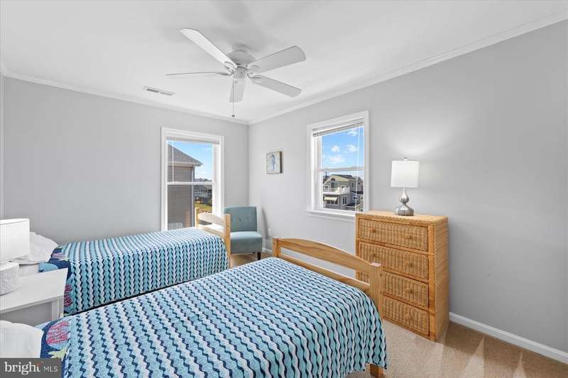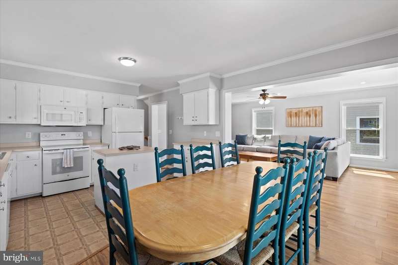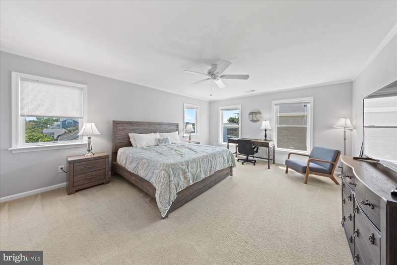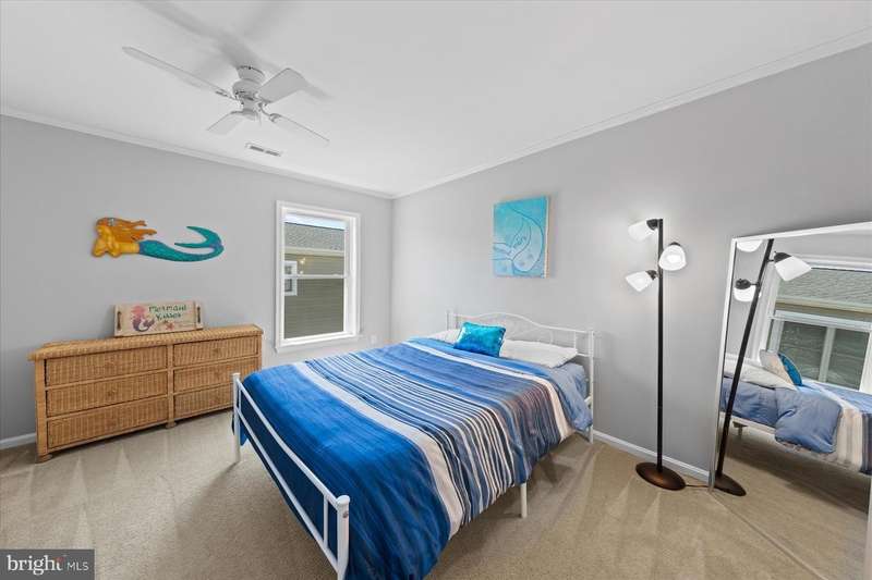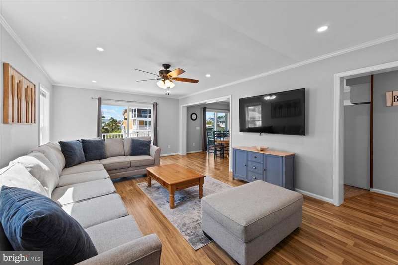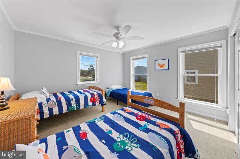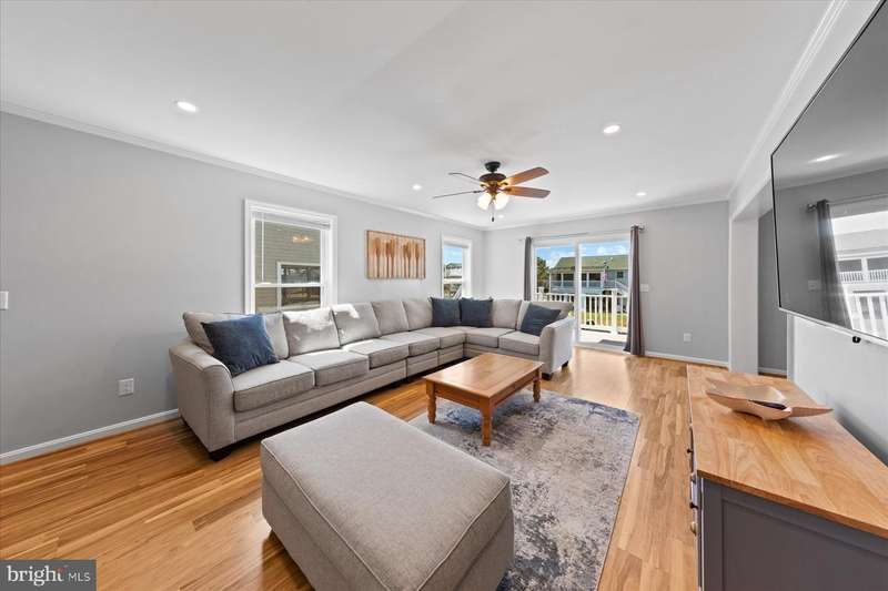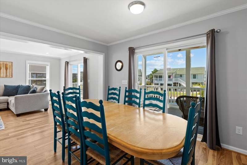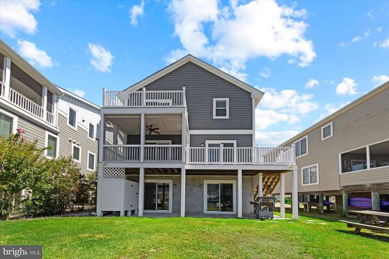 Beautifully situated on the canal and just a short walk to South Bethany's wide, life-guarded beach, this coastal retreat offers the best of both water and beach living. Bright and inviting, the home provides plenty of space for family and guests across three levels. The main floor offers an open living and dining area alongside a well-appointed kitchen with center island. Two sets of sliding glass doors connect these spaces to a screened porch and sun deck overlooking the water, perfect for entertaining or enjoying evening breezes. This level also includes two spacious guest bedrooms and a full bath. Upstairs, the oversized primary suite boasts a walk-in closet and private bath, while three additional guest rooms and another full bath provide ample accommodations. The ground floor features a large finished storage area with two sets of sliding doors leading to a waterfront covered porch and backyard. An outdoor shower and oversized two-car garage add convenience for beach living. With a private dock just steps from the back door, you can launch your boat, jet ski, or kayak with ease - or simply stroll to the beach for a day of surf and sand. This home offers the ideal combination of space, comfort, and location for unforgettable coastal living.