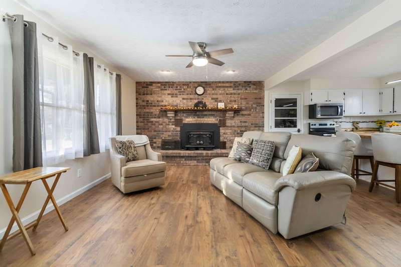 Welcome to 315 Waverly Lane in the desirable Southern Hills subdivision! This 3 bedroom, 1.5 bath home has been beautifully updated and sits on a 0.35-acre lot with a fenced backyard and plenty of extras. Step inside to a cozy living room featuring a wood-burning brick fireplace. The kitchen has been refreshed with new countertops, fixtures, sink, and a stylish barn door for the pantry/laundry area. The full bathroom offers new tile flooring, fixtures, tub, and toilet. Major updates include a new roof and gutters (2022) and a new concrete driveway and back patio. There's an enclosed under-roof pool area with skylights and a screened deck - perfect for relaxing! The above-ground pool (approx. 4 ft deep) has a 2-year-old liner, pump, and filter. Outside you'll find two storage sheds (12x20 and 10x12), a 10x20 carport, and a two-car attached garage. Kitchen appliances and stackable washer/dryer stay! Great location in southeastern Pulaski County, just minutes from Somerset conveniences!