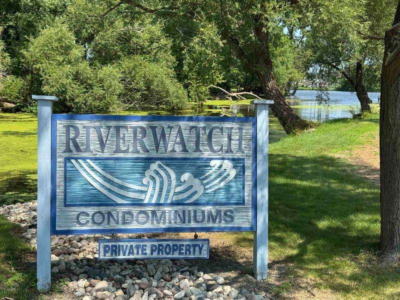 WATERFRONT VIEWS from the three season room on the second floor of this lovely condo unit. Two bedrooms, two baths, freshly painted, new carpet - NEAT AS A PIN! You won't have ANY REASON TO SAY NO here.... Riverwatch is a well maintained Association. Walk the trails around the water or just get in your own watercraft and see the shoreline sites! You can tie up to one of the Association piers or launch at the adjacent public launch site. Three season room is the cat's meow - bright with a freshly painted floor. Believe it or not - 948 sq feet is just about right for one or two... use the 1 car garage for additional storage if needed. In unit laundry. Pets allowed.