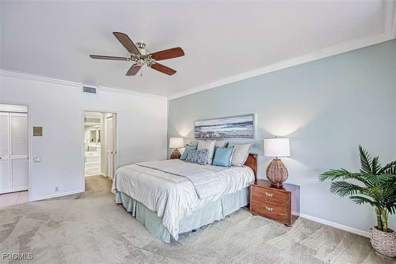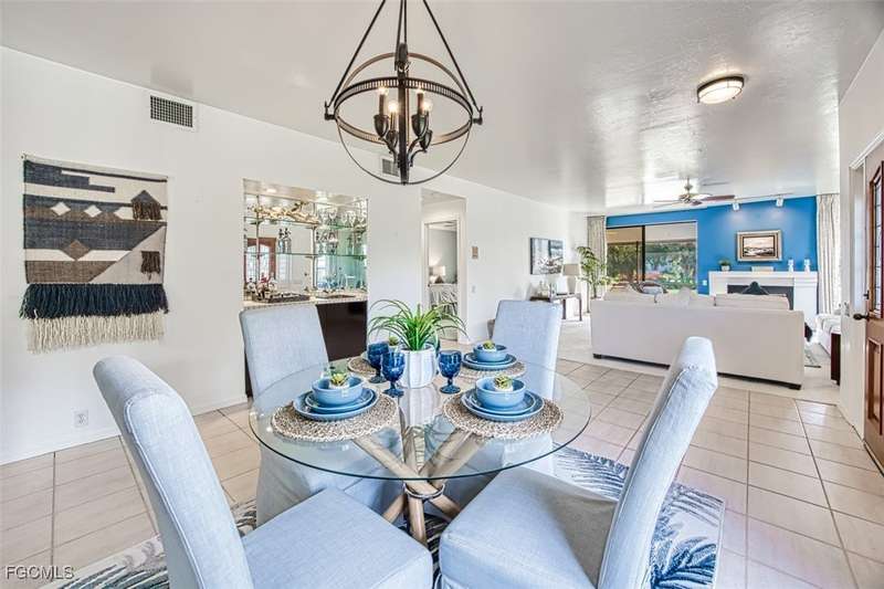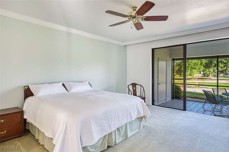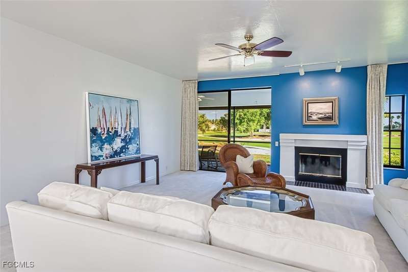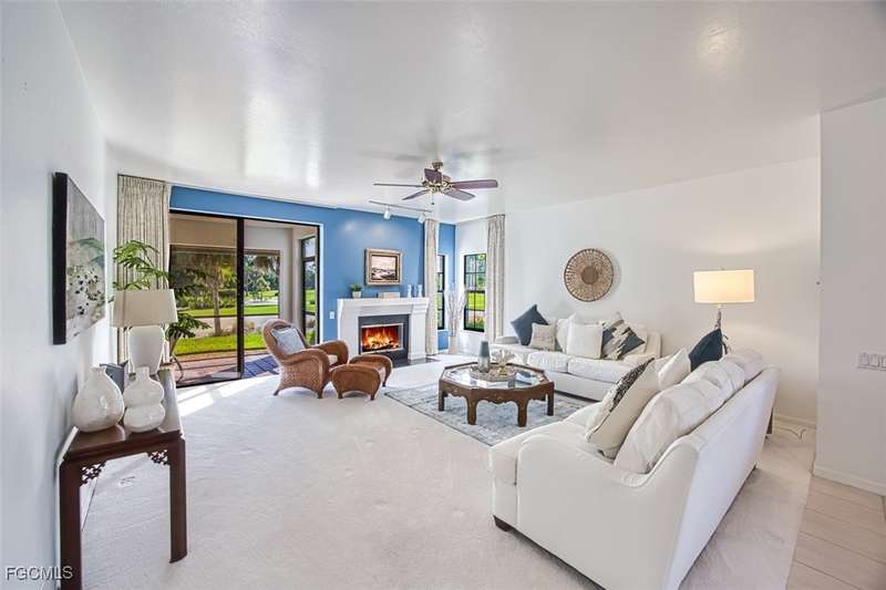 Exceptional Opportunity to Live in The Forest! Over looking the new re-designed Bear Course, this desirable first-floor end unit with a two-car garage is close to the main club and steps to the community pool. While membership is optional, homeowners have the benefit of the beautiful course views and the impeccible maintenence and care through out the Country Cub. The spacious living area is perfect for entertaining, featuring an inviting fireplace and a built-in wet bar. The large owner's suite offers beautiful golf course views and the potential for a luxurious en-suite bath with dual vanities, a deep soaking tub, a separate shower, and a generous walk-in closet. The guest bedroom also includes a fully updated en-suite bath in cool coastal tones. Enjoy cooking or casual dining in the charming eat-in kitchen, complete with a large island ideal for meal prep or serving. Residents of The Forest Country Club enjoy a prestigious, amenity-rich lifestyle with two 18-hole championship golf courses, an exceptional tennis program, bocce, pickleball, a fitness center, and a newly renovated clubhouse offering indoor and outdoor dining. Club memberships range from dining to sports, to full golf. Perfectly located in the heart of South Fort Myers, this condo received no flooding from Ian and is just minutes from RSW Airport, JetBlue Park, Southwest Florida's stunning white-sand beaches, and an array of shopping, dining, and entertainment options.