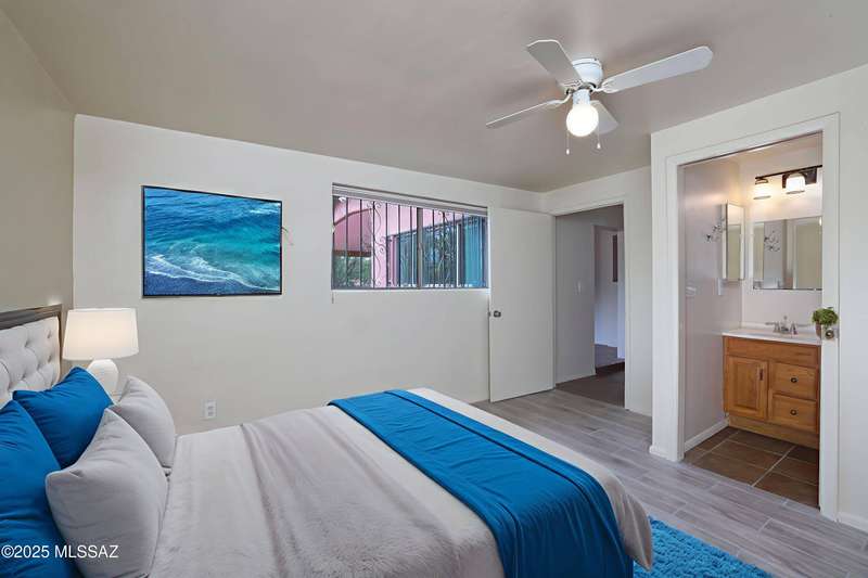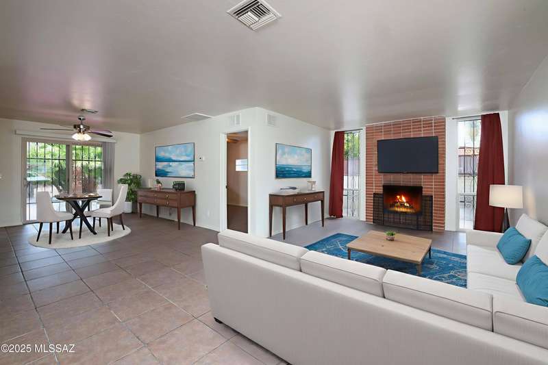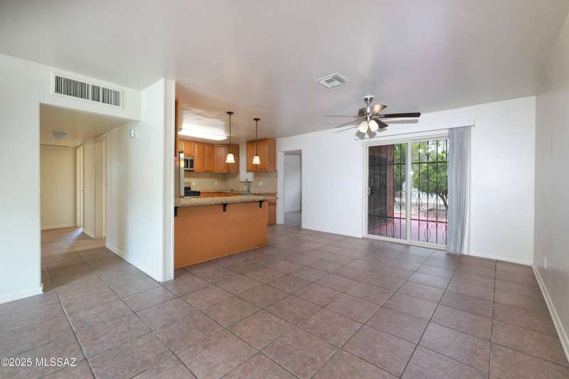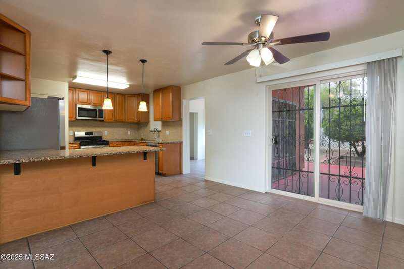 Set on a quiet street with large lots, this charming home offers a spacious living area with tile floors throughout. The kitchen boasts abundant cabinetry, granite counters, and a large pantry. Four generously sized bedrooms plus a bonus room off the kitchen--perfect as a breakfast nook, plant room, or cozy reading space provide great flexibility. A huge covered porch opens to the very large, fenced yard with mature trees, ideal for entertaining or relaxing. Off-street parking for up to four cars. Just 2 miles to the University of Arizona and 1.5 miles to UMC, with beautiful La Madera Park nearby. Nestled in a peaceful central neighborhood, this home combines space, charm, and convenience. Principal/SLR is a licensed real estate agent in the State of Arizona.