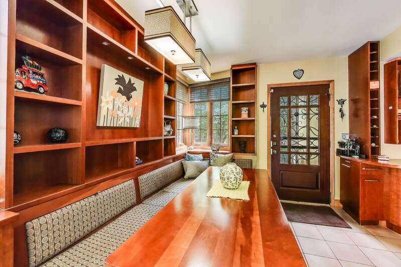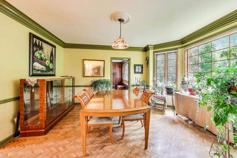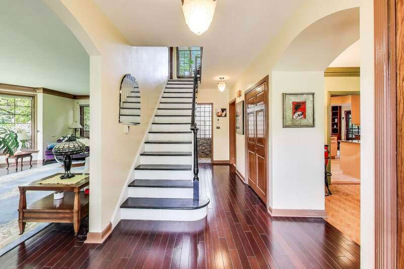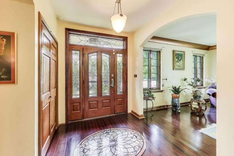 Elegant Georgian Residence on a Premier Double Corner Lot Across from Peterson Park. Welcome to this beautifully updated Georgian home, perfectly positioned on a rare double corner lot directly across from the natural beauty of Peterson Park and the North Park Nature Preserve. Radiating timeless charm and modern comfort, this spacious, light-filled home offers 3 bedrooms, 2 full baths, 2 half baths, and thoughtfully curated custom living spaces throughout. The inviting main level is designed for effortless entertaining, with an open layout that flows seamlessly from room to room. The formal living room showcases a stately wood-burning marble fireplace framed by a hand-carved oak mantle, and an oversized bay window that offers serene park views. Rich Brazilian Angelim hardwood flooring sweeps through the entryway, encircling a dramatic custom stone medallion. The formal dining room delights with a newly refinished original parquet floor and a sun-drenched south-facing bay window. The chef's kitchen is equipped with high-end stainless steel appliances, sleek countertops, and a charming built-in breakfast nook-perfect for casual mornings or intimate gatherings. Retreat upstairs to a spacious primary suite with vaulted ceilings, a luxurious marble bath featuring a soaking tub, walk-in glass shower, and a custom walk-in closet outfitted with built-in drawers, shelving, and seasonal storage. The finished lower level includes a cozy recreation room with a second wood-burning fireplace, a full laundry area, and built in's offering ample storage. Additional features include a whole-house air filtration and humidification system, two-car garage, and lush landscaped grounds. A truly special home that combines classic architecture, modern elegance, and an unbeatable location.