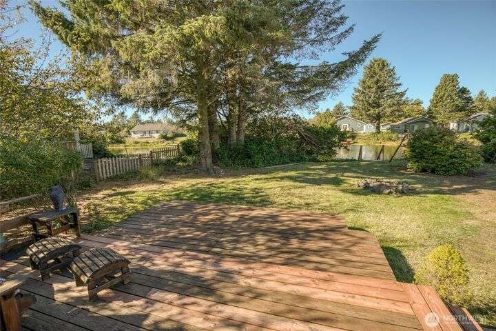 Waterfront! Situated on the Grand Canal & less than 1 mile from Public Beach Access & Community Pool - this charming home has been thoughtfully updated throughout the years including windows, roof, siding, kitchen & more! Interior features an open concept living space w/ vaulted ceilings & open beams + loft - kitchen has been fully updated w/ granite countertops, black SS appliances & beachy white cabinets. A wall of west-facing windows overlook the canal & backyard - enjoy evening sunsets & all of the wildlife that frequent our fresh waterways. Bedroom & bathroom with step-in shower. Outdoor living space includes large carport that is enjoyed year around for gardening, BBQ-ing & relaxation + 96SF of enclosed storage, oversized deck & dock.