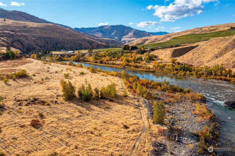 Stunning 16+ acre no-bank Methow Riverfront property, protected by the Methow Conservancy, with a 1 acre building envelope for a peaceful riverfront home and an agricultural business opportunity. Enjoy the bounty & benefit of 3 producing acres of the highly desirable SugarBee apple & newly installed irrigation system. Robust well pumping 40+ GPM & Certificated Water Rights. This property blends innovation & preservation, creating endless opportunities in a breathtaking setting. Whether for farming, relaxation, or building your legacy, the sky's the limit on riverfront paradise. No timeline to build, install an RV site and build later. 2 legal ingress/egress off HWY 153.