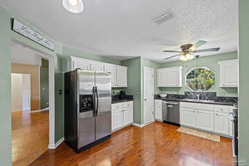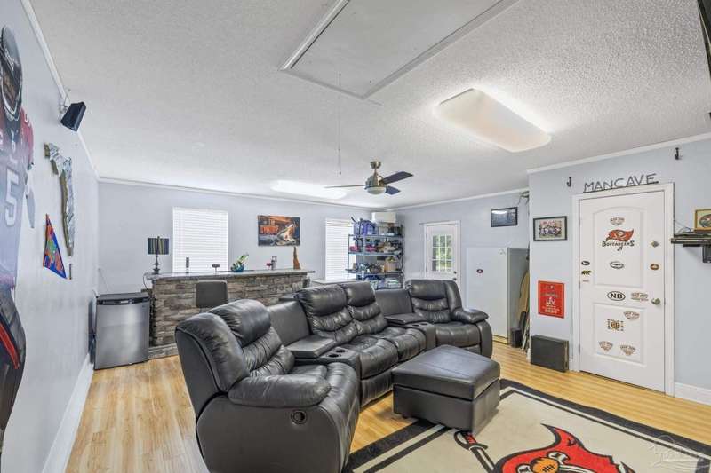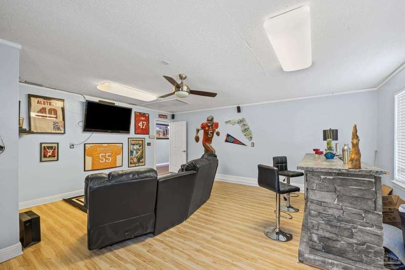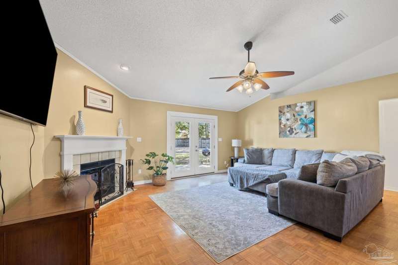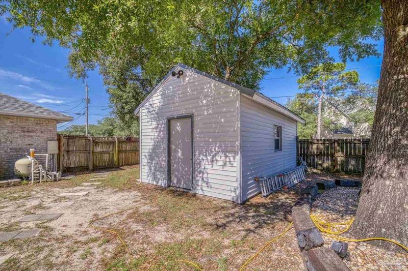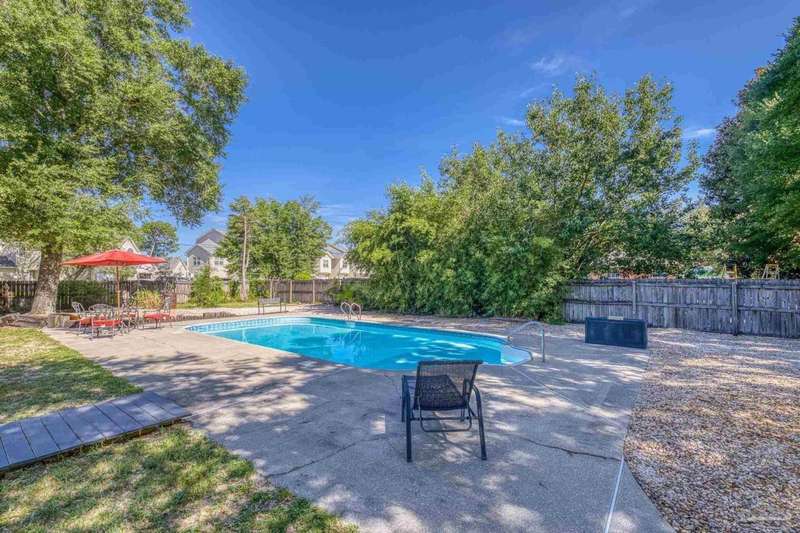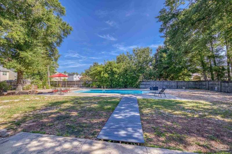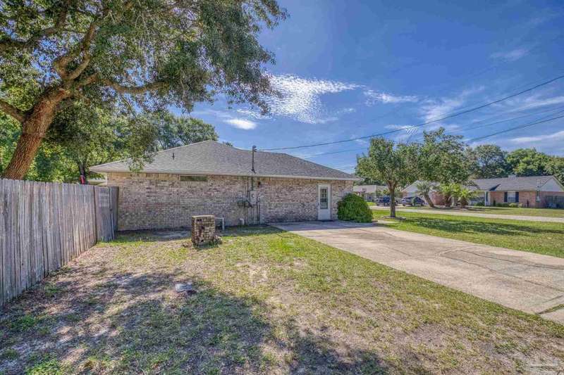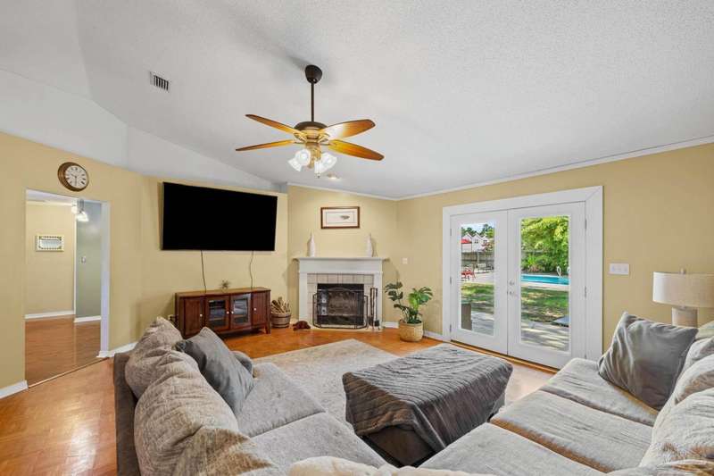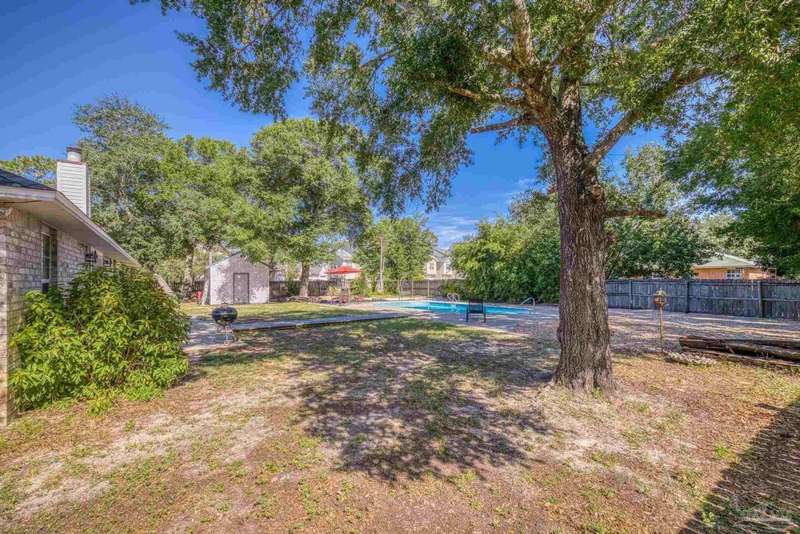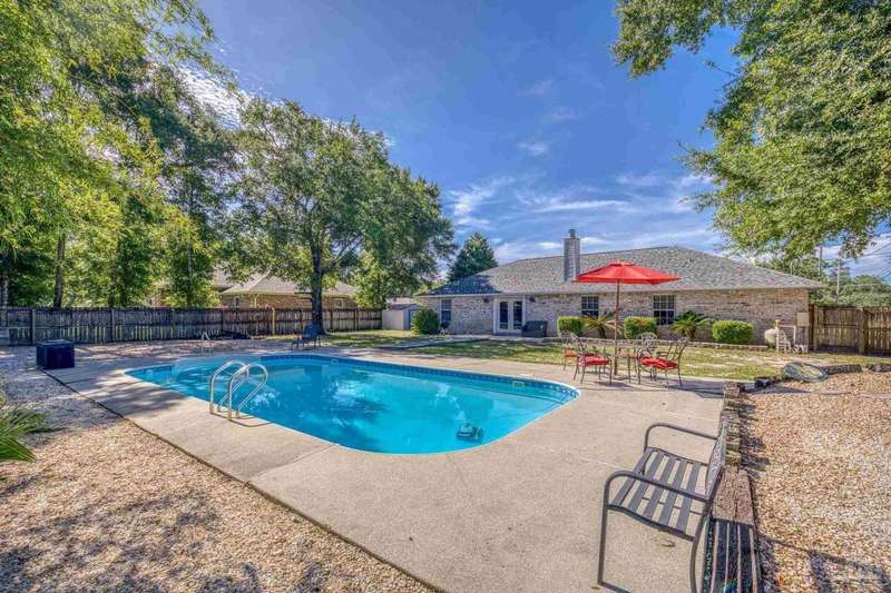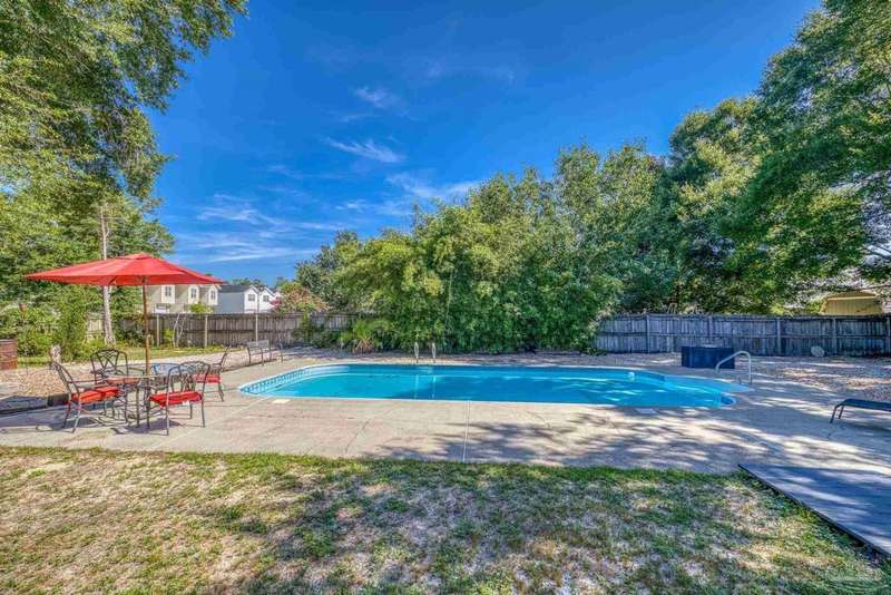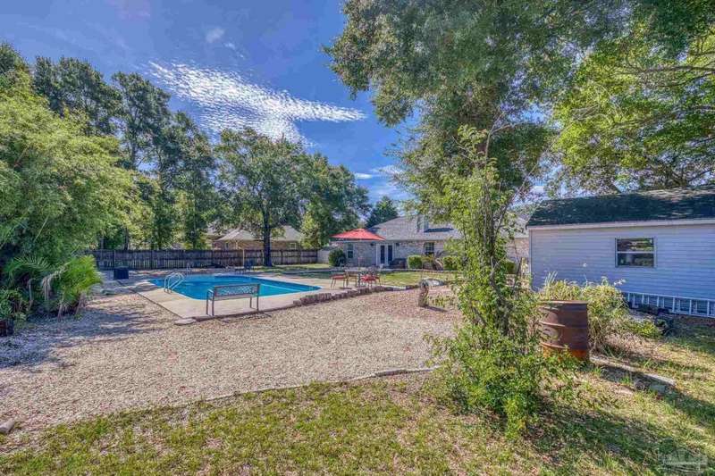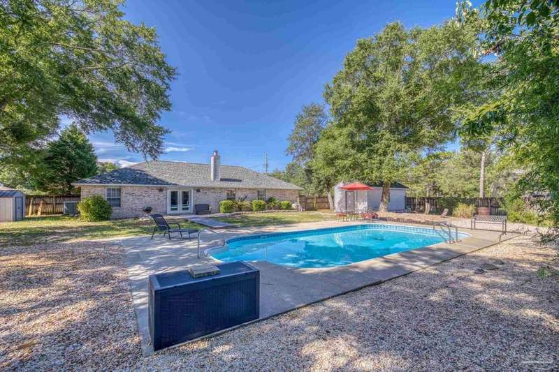 Welcome to this charming 3-bedroom, 2-bath all-brick home perfectly situated on a spacious corner lot. With a roof just one year old featuring durable Titan shingles, this property is ready to give you peace of mind for years to come.Inside, you'll love the open feel of the living room, which boasts high ceilings, a cozy wood-burning fireplace, and sliding glass doors that offer a beautiful view of the backyard retreat. Step outside to your private getaway with a large in-ground pool, an open patio ideal for entertaining, a fully fenced yard, and a yard building for extra storage.The converted garage adds even more value and fun - currently set up as a stylish man-cave, it's available to come furnished with the bar, couch, and TV so you're ready to host game days from day one!The spacious main bedroom provides plenty of room for a relaxing sitting area and features an ensuite bath with two closets, a newly updated granite vanity, and a generous tiled standing shower. The two additional bedrooms share a full bathroom conveniently located between them.This home offers the perfect blend of comfort, entertainment, and everyday practicality - all in a desirable corner-lot location. Don't miss your chance to make it yours!