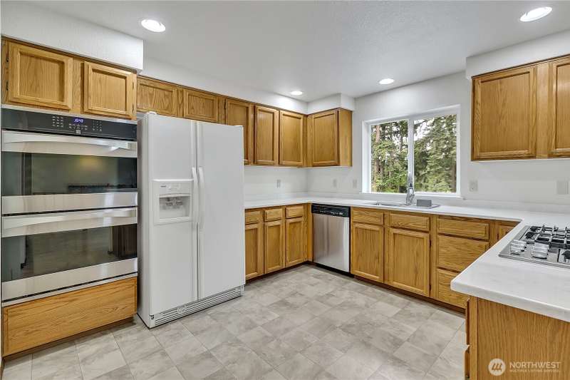 Impeccably maintained home in desirable Tahoma School District in Diamond Hills. Tucked away at the end of a cul-de-sac, this home feels far away from neighbors. Soaring ceilings and bright formal areas greet you. The inside features include original hardwood floors, fresh paint, new carpet, and quartz countertops. The fireplace is wood burning with propane ignition, there is AC, and a generator hook up to keep you comfortable. The green space behind the home makes the manicured yard feel so much larger. The backyard feels like a retreat with the deck, fire pit, gas line for BBQ or hot tub and patios. There is also a cement pad perfect for an RV along the side of the home. Excellent location near schools, Hwy 18/169, and Lake Sawyer.