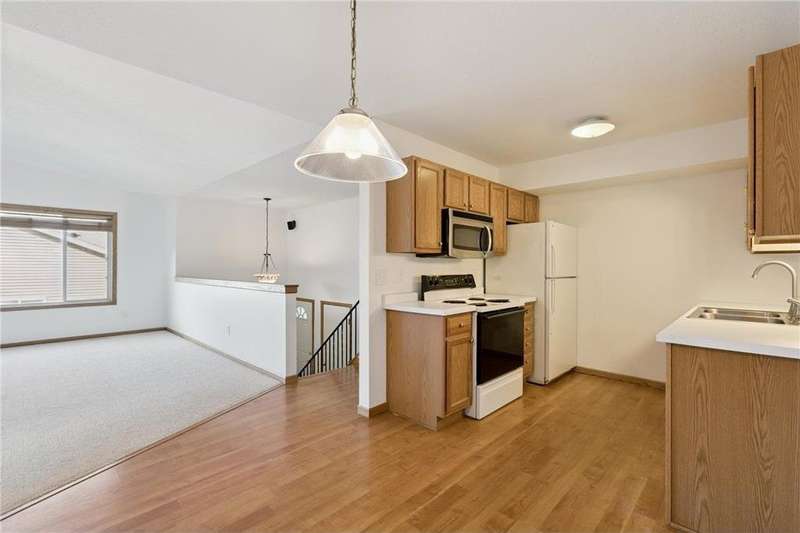 Move-in ready with fresh updates. This 3 bedroom, 2 bath split entry side-by-side townhouse features brand new carpet, fresh paint throughout and a walk-out lower level. Enjoy the semi-private backyard that backs to the Luce Line Trail. No association.