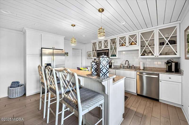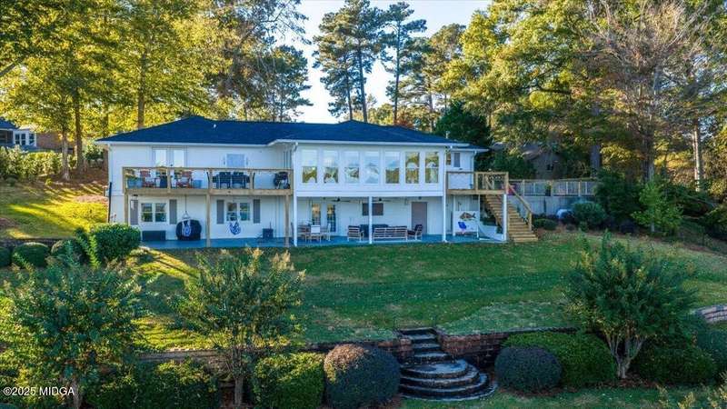 Completely updated and beautifully remodeled 5-bedroom home with an impressive big water view on Lake Tobesofkee. Sophisticated finishes and thoughtfully designed interiors blend style and comfort throughout. Enjoy outdoor living at its best with a covered patio, spacious deck, and inviting fire pit area. Deep water with a private boathouse makes this exceptional lakefront property the perfect year-round retreat just minutes from town.