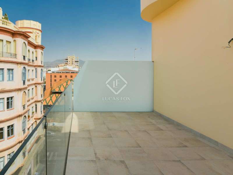Lucas Fox, the absolute leader in luxury real estate sales, is pleased to present this magnificent brand new 2 bedroom, 2 bathroom apartment, located on the first floor of a sumptuous eleven-apartment building. It is located in the heart of Malaga, on the Alameda Principal, two minutes from Calle Lario and 5 minutes from Muelle Uno. A unique opportunity to have a complete property in the most exclusive area of the vibrant city of Malaga, the fashionable city in Europe. This modern brand new building, built on a 307 m² plot , has five floors, between which the eleven apartments are distributed, plus two basement floors, with twelve garages and eleven storage rooms, also for sale. This apartment, which is located on the 1C floor, consists of two bedrooms and two bathrooms. The main bedroom has a surface area of 15 m² and includes a comfortable dressing room and a private bathroom with truly luxurious finishes. The secondary bedroom , spacious and bright, is also exterior. The living-dining room with the modern open kitchen receives abundant natural light from the large windows from which you can contemplate the entire life of the Alameda Principal. The materials have been carefully selected so that the whole exudes elegance, warmth and harmony. This building offers high ceilings and large windows to allow in plenty of natural light. The rounded terraces are designed with cast iron ornaments that combine the beauty of the classic with the modern. All apartments have a charming terrace from which to contemplate the life of this city. On the fourth floor, there is also a 45 m² communal terrace, so that nothing is missing. Please contact for more information.