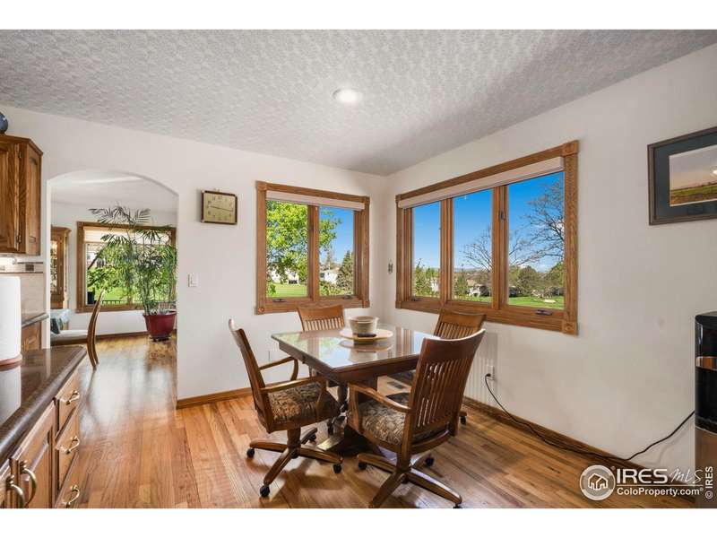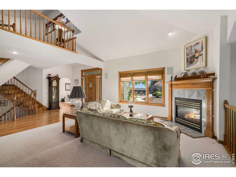 Backs to the 2nd hole at Ptarmigan Golf Course, this beautifully designed custom 2-story home sits on an estate-sized lot just under half an acre, surrounded by mature, lush landscaping. From the inviting covered front porch, step into an open floor plan featuring dramatic vaulted ceilings, gleaming wood floors throughout most of the main level, and stunning views from nearly every room. The chef's kitchen offers quartz countertops, stainless steel appliances, an island, and a cozy nook. The living room features a corner fireplace and flows seamlessly into the sunroom and media room. Upstairs, you'll find a spacious primary suite with an adjoining flex space, along with two guest bedrooms, and full guest bathroom. The finished basement includes a second fireplace, rec room, theater room, wet bar, and a fourth bedroom. Relax on the deck at sunset or unwind in the hot tub on the patio. You'll love calling Ptarmigan home!