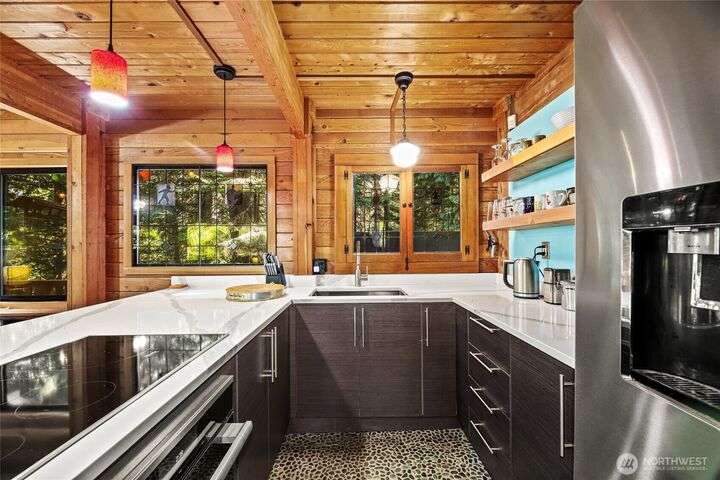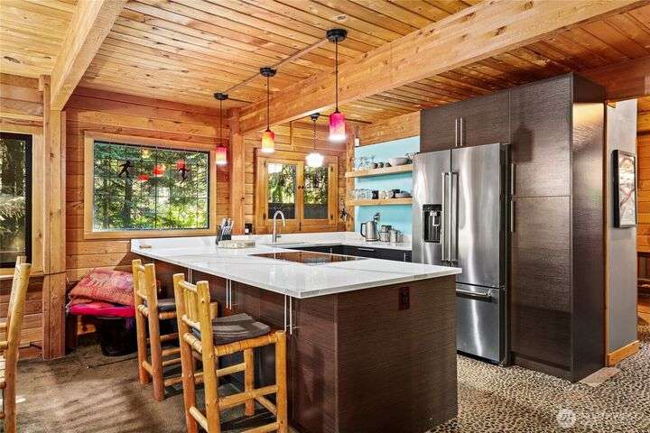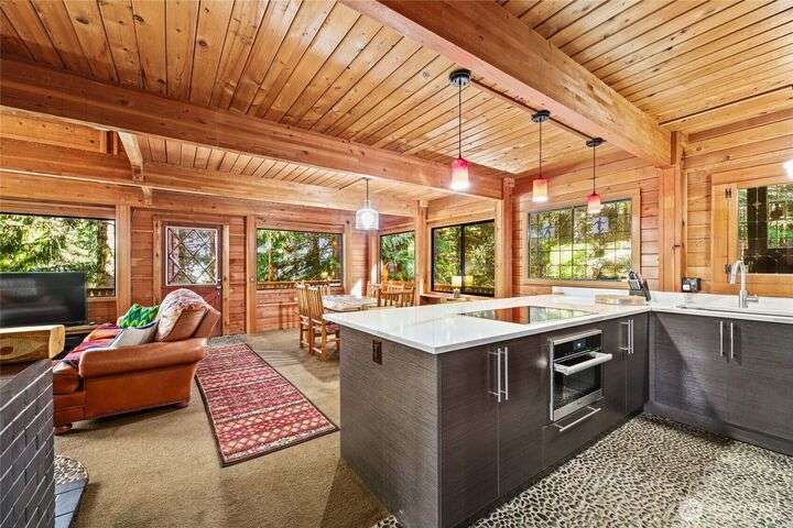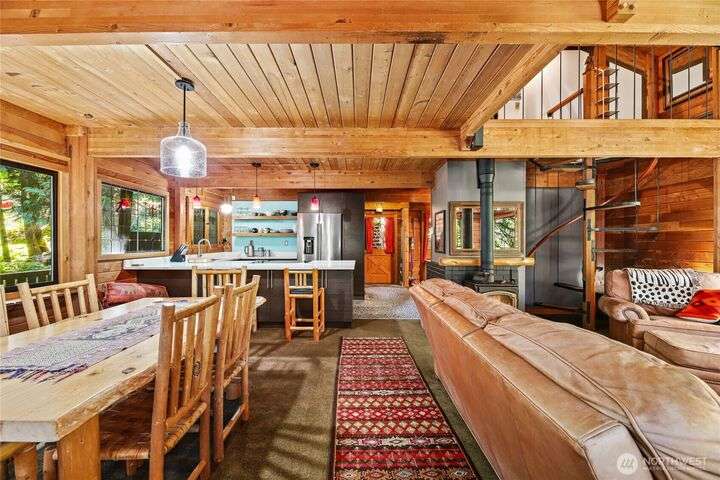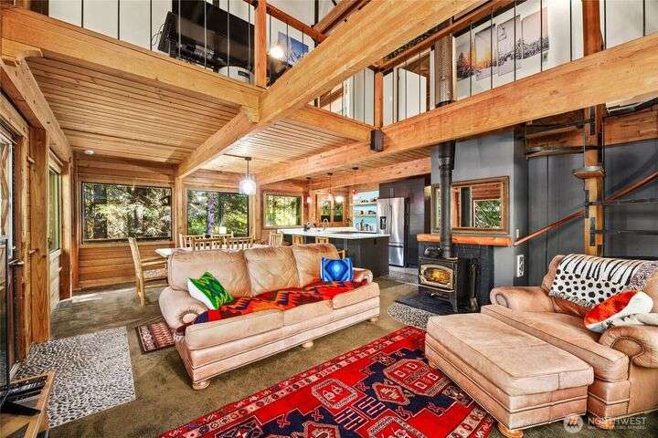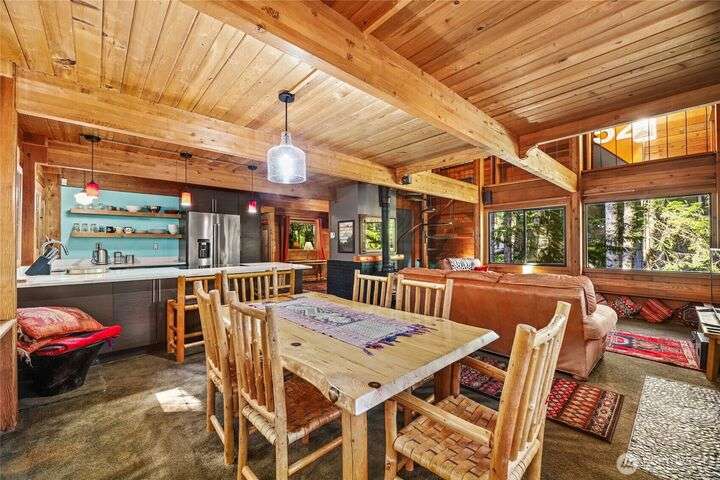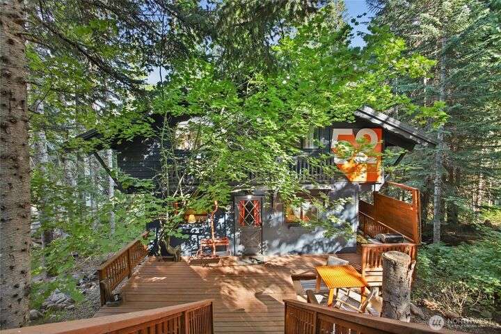 Quintessential ski cabin perched in the trees, offering the perfect blend of mountain charm, modern updates and ultimate privacy. This cozy retreat features an updated kitchen and 2 bathrooms, all with radiant heat floors, classic wood stove, and flexible layout with 2 bedrooms plus a large entry/flex space that can double as a converted bedroom. Enjoy the outdoors from the wrap-around deck or retreat to private second and third balconies for added serenity. Peek-a-boo mountain views and a forested setting create a true alpine escape, while abundant storage under the home provides room for all your gear.