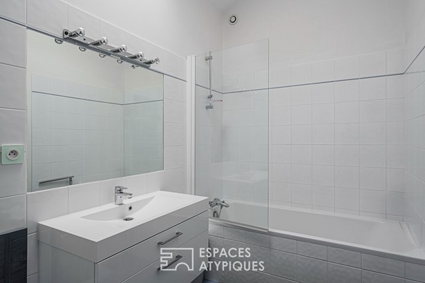 On the garden side, the heated 4×8 m swimming pool is equipped with a semi-high motorized shelter, a counter-current swimming system, active oxygen treatment, a pH regulator and a sand filter, offering optimal swimming comfort. The whole is completed by a central vacuum system, gas condensing heating (underfloor heating and radiators), and careful management of volumes and flows.