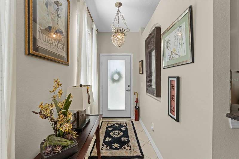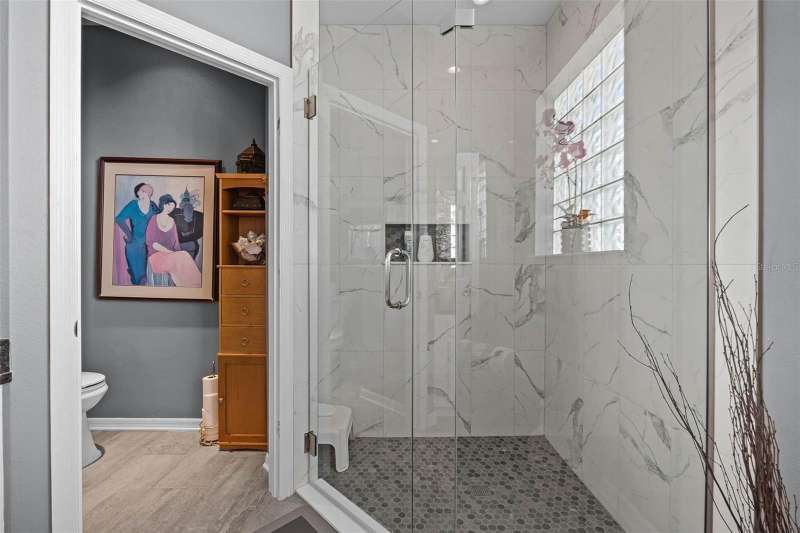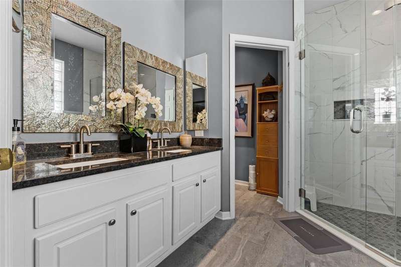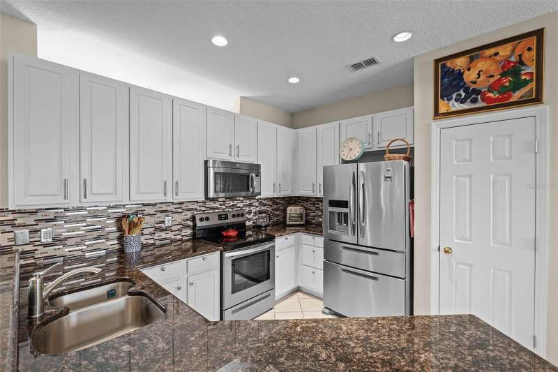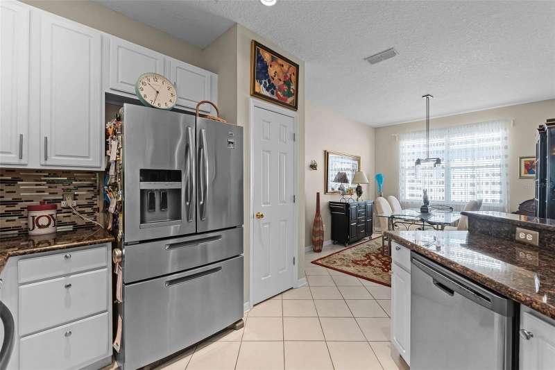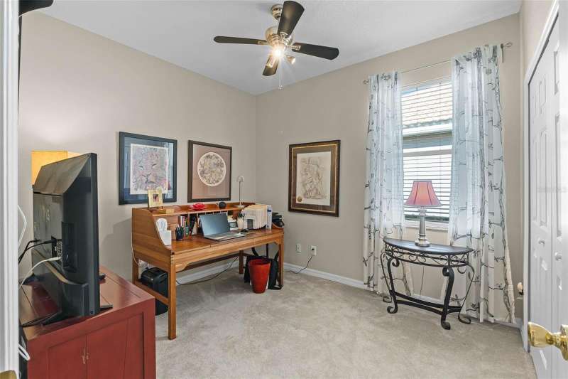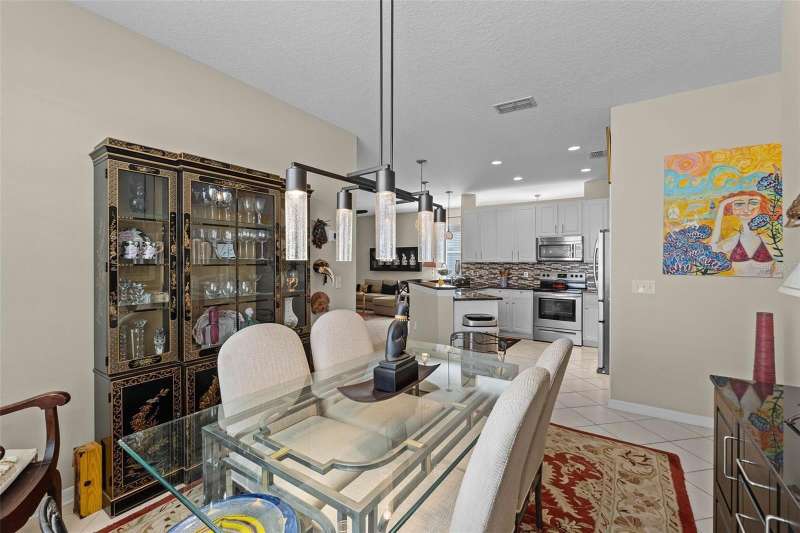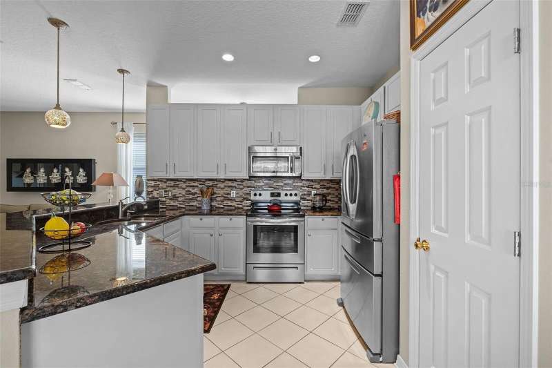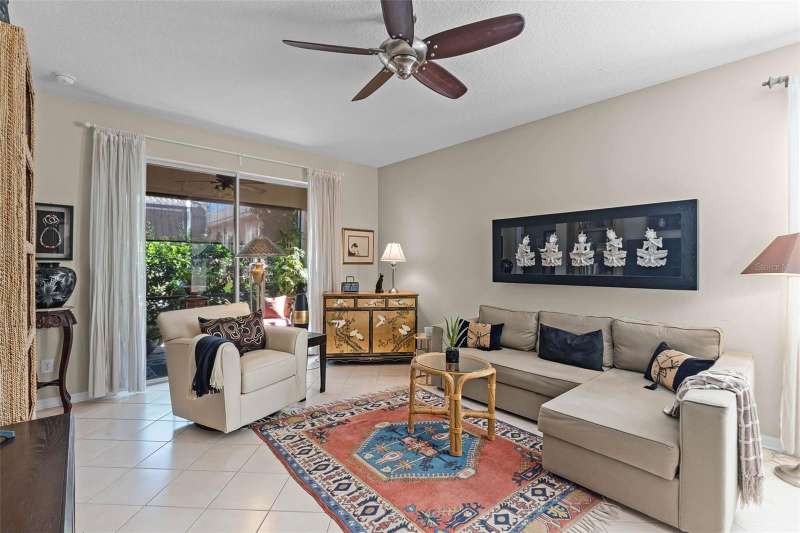 This residence offers an inviting lifestyle in the Saint Andrews area of the Country Club of Mount Dora. The home features ceramic tile flooring throughout, with the exception of laminate in the primary bedroom and carpeting in the second and third bedrooms. The primary bedroom is generously sized at 17x14, and the primary bathroom underwent a renovation in 2024, which included the addition of a double shower with seamless glass doors and new tile flooring, resulting in a stunning space. Additional enhancements include a new air conditioning system, hot water heater, and range, all installed in 2021, along with a fresh exterior paint job completed the same year. The open floor plan, combined with split bedroom arrangements, makes it ideal for entertaining. A charming screened back porch provides a perfect spot to relax during cooler evenings, surrounded by hedges for added privacy. The kitchen and both bathrooms boast granite countertops. The kitchen has a closet pantry, and all appliances are stainless steel, while the adjacent dining area features a lovely window that allows for a flood of light into the kitchen as well. Residents can also take advantage of community amenities such as a pool, exercise equipment, and a private clubhouse. The property includes a two-car garage, a ceramic tile roof, sidewalks, and street lighting. If you are considering a home in Florida, this could be an excellent choice for homeownership.