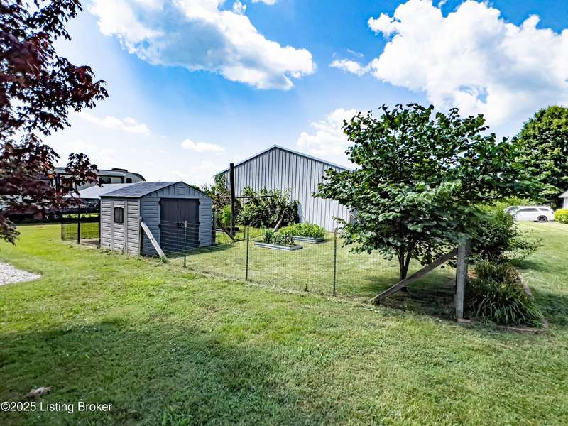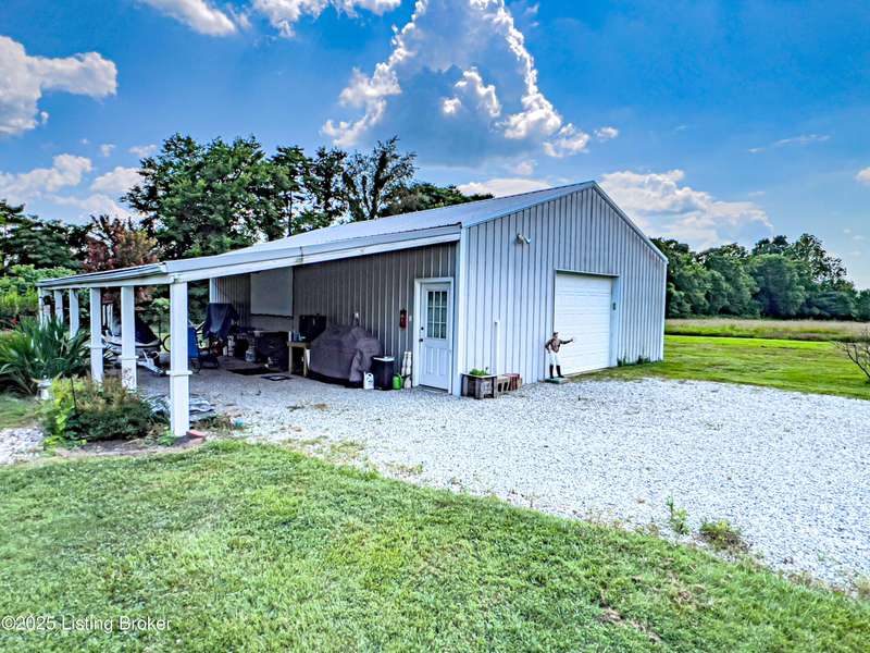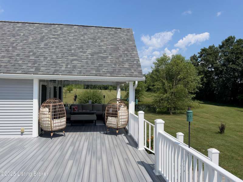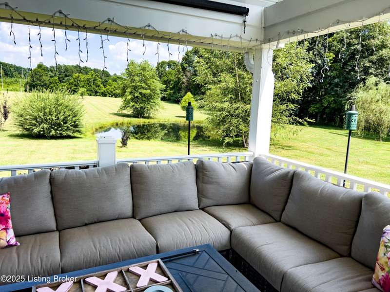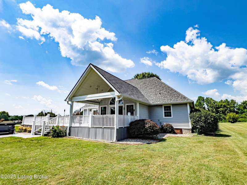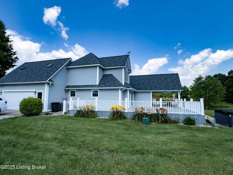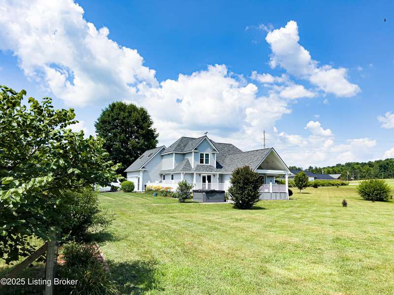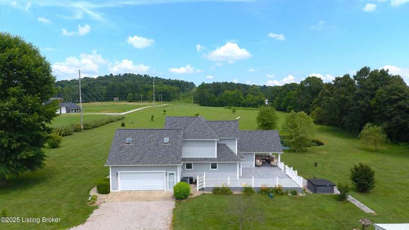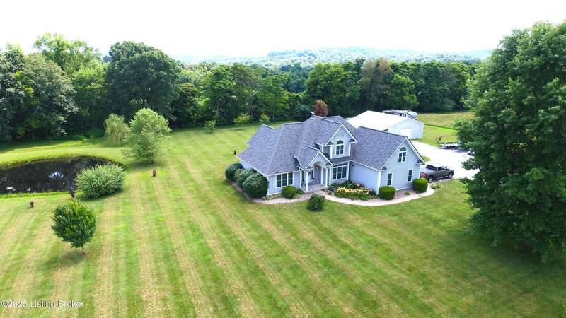 Welcome to your personal slice of paradise just 1.4 miles from Rough River State Park. This stunning 4-bedroom, 2.5 bath home offers 2278 sq ft of perfectly designed living space nestled on 6.09 acres of serene countryside. Step inside to discover hickory hardwood flooring, vaulted ceilings, built-ins, a main level primary suite, and an abundance of natural light flowing throughout. The beautifully designed kitchen offers granite countertops, ample cabinetry, double ovens and a perfectly appointed coffee bar. The spacious living room has a cozy fireplace and invites you to relax. It flows to a majestic covered deck with a vaulted ceiling, continuing as a mammoth open deck extending behind the kitchen and to the side of the home- ideal for entertaining or simply soaking in the sights and sounds of nature. Additional features include a stocked pond, a 30x40 pole barn with an attached shed, and a fenced area perfect for pets. The backyard faces gorgeous mature woods, offering privacy, natural beauty and frequent visits from deer, birds, and other wildlife. This gorgeous retreat has something for everyone!