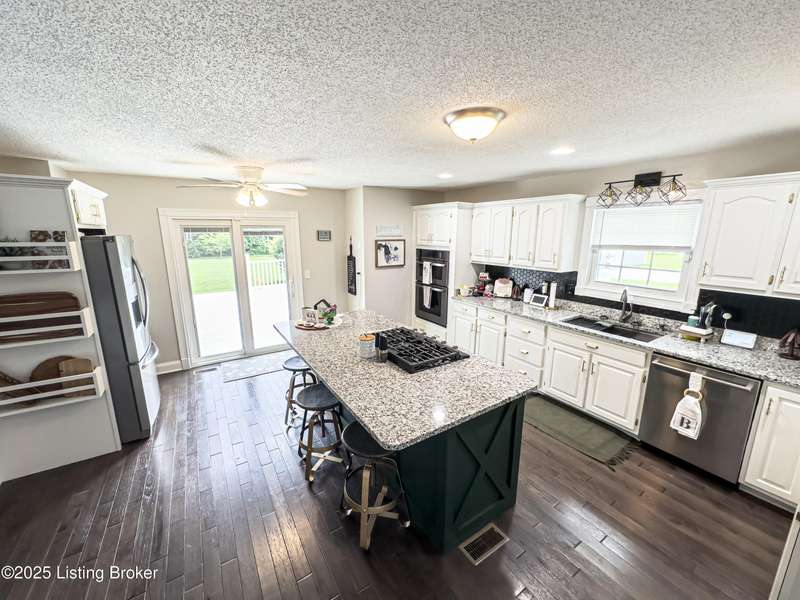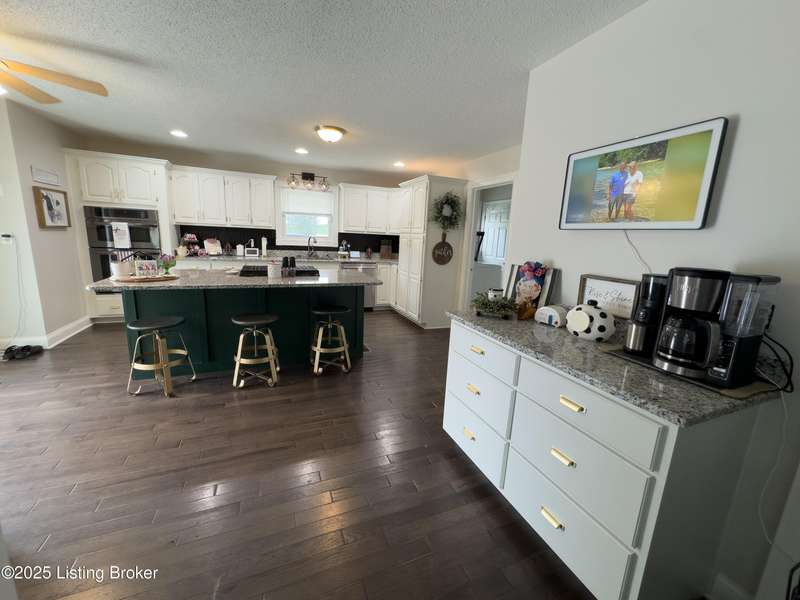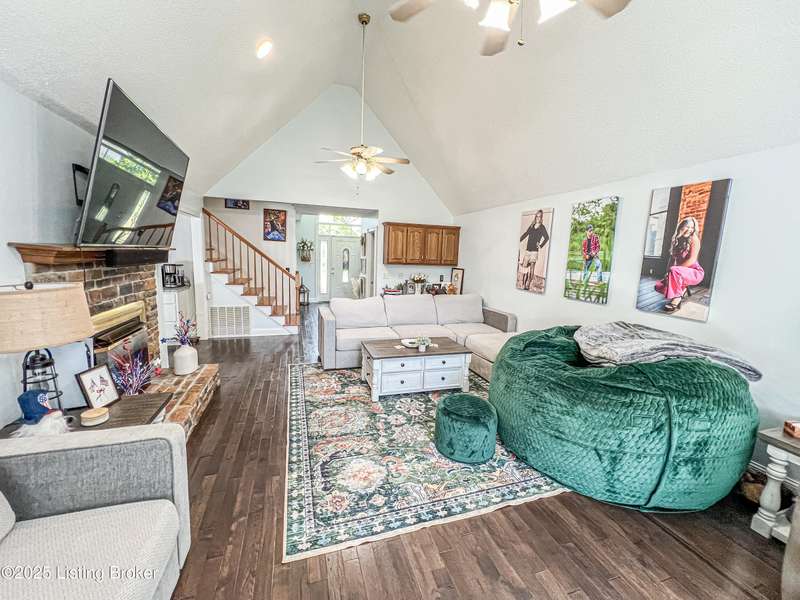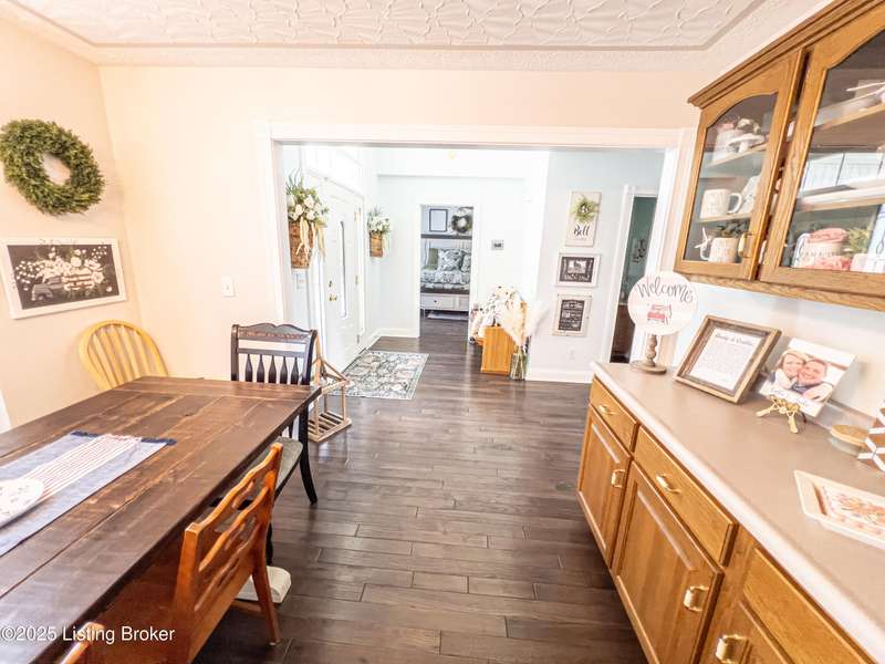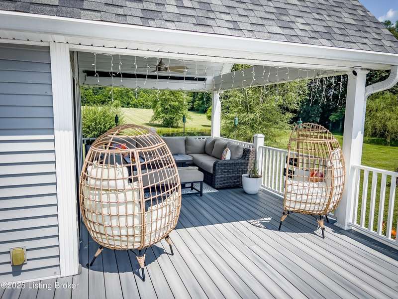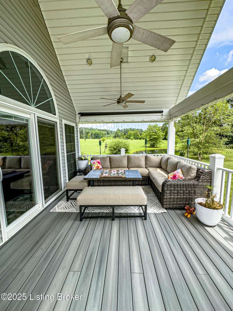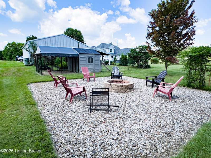 Welcome to your personal slice of paradise just 1.4 miles from Rough River State Park. This stunning 4-bedroom, 2.5 bath home offers 2278 sq ft of perfectly designed living space nestled on 6.09 acres of serene countryside. Step inside to discover hickory hardwood flooring, vaulted ceilings, built-ins, a main level primary suite, and an abundance of natural light flowing throughout. The beautifully designed kitchen offers granite countertops, ample cabinetry, double ovens and a perfectly appointed coffee bar. The spacious living room has a cozy fireplace and invites you to relax. It flows to a majestic covered deck with a vaulted ceiling, continuing as a mammoth open deck extending behind the kitchen and to the side of the home- ideal for entertaining or simply soaking in the sights and sounds of nature. Additional features include a stocked pond, a 30x40 pole barn with an attached shed, and a fenced area perfect for pets. The backyard faces gorgeous mature woods, offering privacy, natural beauty and frequent visits from deer, birds, and other wildlife. This gorgeous retreat has something for everyone!