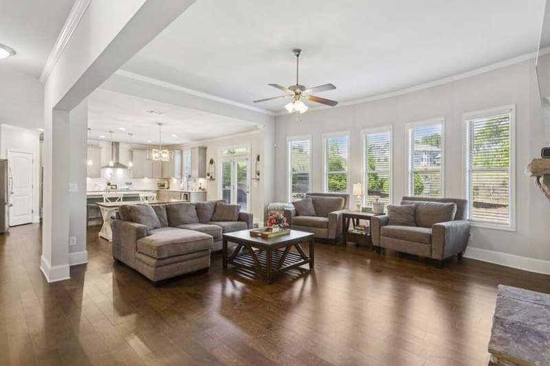 Fabulous 5-Bedroom, 4-Bath Home with 3-Car Garage in sought after Seven Hills Community! This well-maintained home features an amazing and functional floor plan designed for both everyday living and entertaining! Step into elegance through the grand entry, flanked by a private study and a gorgeous formal dining room. This stunning home features a gourmet kitchen with an abundance of cabinetry, stainless steel appliances, vent hood, hardwood flooring, and a HUGE island - all overlooking a breathtaking family room with high ceilings and a dramatic bowed wall of windows that fill the space with natural light and offer serene views of the level, private backyard. There is also a bedroom on the main level with a full bath! Upstairs you will find a spacious master suite that boasts a luxurious bath and an unbelievable walk-in closet. Laundry is thoughtfully located on the upper level for added ease. Upstairs you will also find three generously sized secondary bedrooms, two full baths, and a large bonus room! Seven Hills subdivision offers resort style amenities like pickleball, tennis, volleyball, and basketball courts, a splash pad, Junior Olympic sized swimming pool, a dog park, clubhouse, playground, a picnic pavilion, and hiking and biking trails throughout the community. Book your tour today!