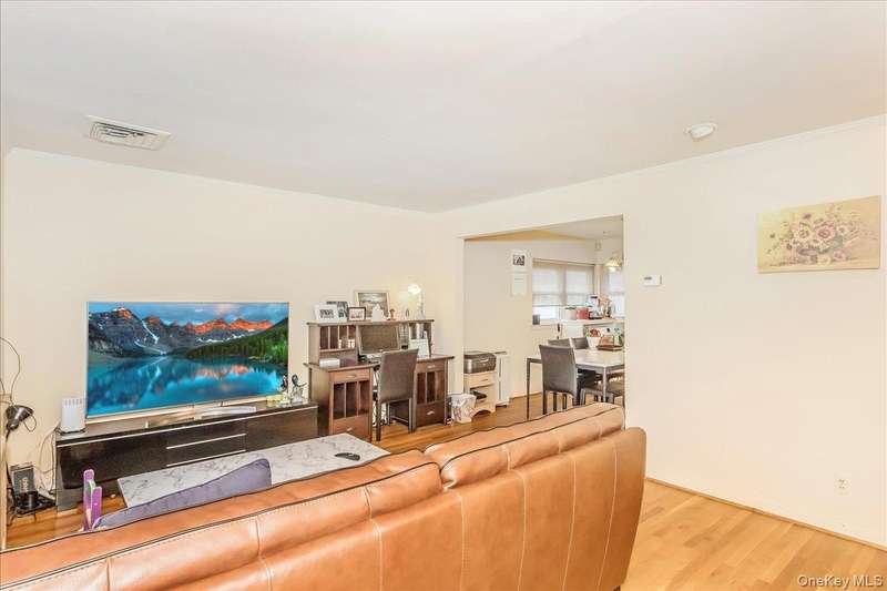 Expanded Cape in the Great Neck South School District! This 4-bedroom, two full bath home features gas heating and central air conditioning. The first floor offers a bright living room, formal dining room, two bedrooms, and a full bath. The second floor includes two additional bedrooms and a full bath. The basement provides a large open area with plenty of space for storage or recreation. Hardwood floors throughout, an in-ground sprinkler system, and a detached one-car garage. Conveniently located close to highways and shopping. Taxes: $12677.93(before STAR).