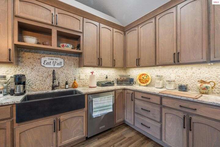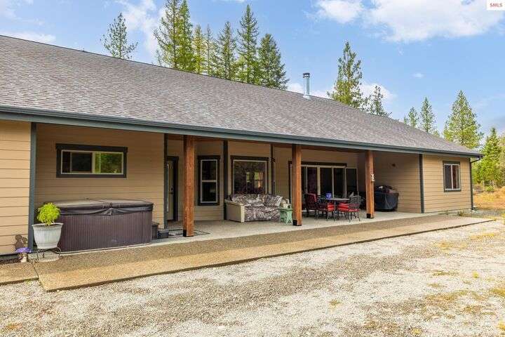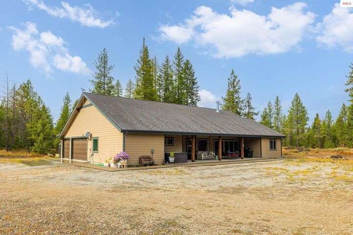 This exceptionally built 3 bedroom, 2 bathroom, 2,181 sq ft home on 7.8174 acres with a 40x24 metal carport blends modern convenience, thoughtful design, and true Northwest living. Enjoy geothermal radiant floor heating throughout the entire home—including the garage for year-round comfort. A private well with a 3,000-gallon holding tank and pressurized vault, paired with a water softener, ensures reliable water. The tankless hot water heater offers both electric and propane options, while a large propane tank and auto-reporting electric meter keep everything running seamlessly. With two septic systems, a drainfield already in place, plus RV clean-out and power hookups, there’s potential to build a second home or guest residence. Inside, the kitchen is a showstopper—featuring granite countertops, KitchenAid appliances, a double wall oven, gas range, a large island with custom bar seating, and a stylish tile backsplash. Just off the kitchen, you’ll find a convenient home office framed by beautiful frosted glass French doors. The living room centers around a striking river-rock fireplace, perfect for cozy evenings. Tall ceilings, detailed woodwork, and lit closets in every room highlight the thoughtful craftsmanship throughout. The garage offers a built-in dog door leading to a fenced dog run, making it easy to accommodate pets. Enjoy the outdoors with privacy, abundant wildlife, and room to breathe—making this property a true sanctuary.