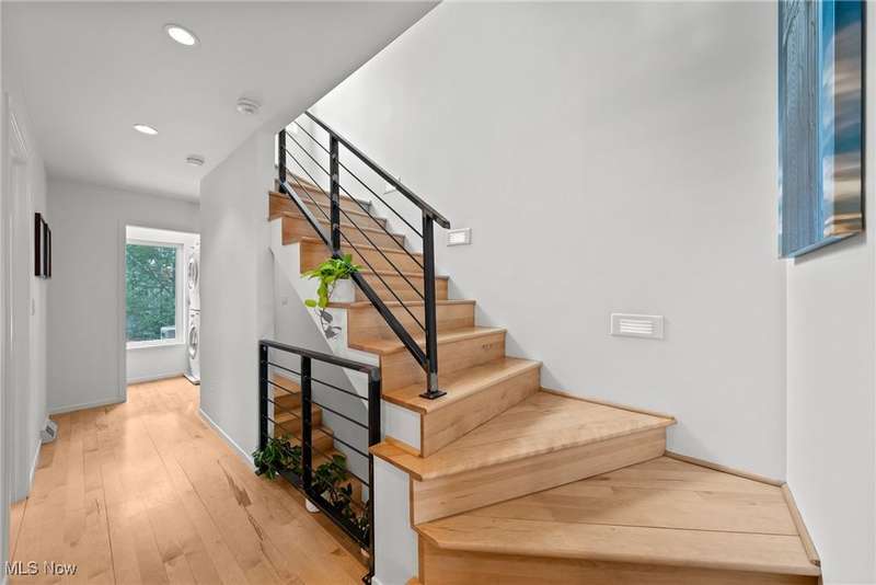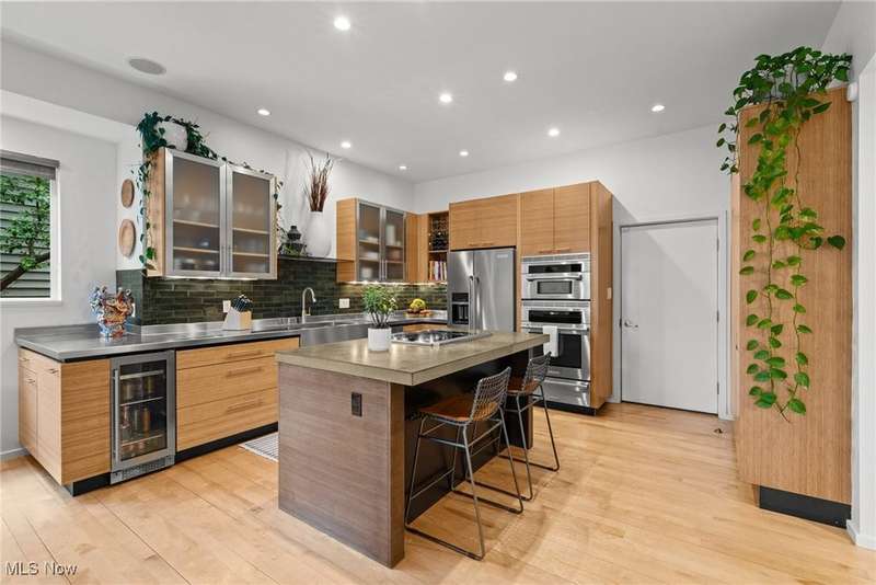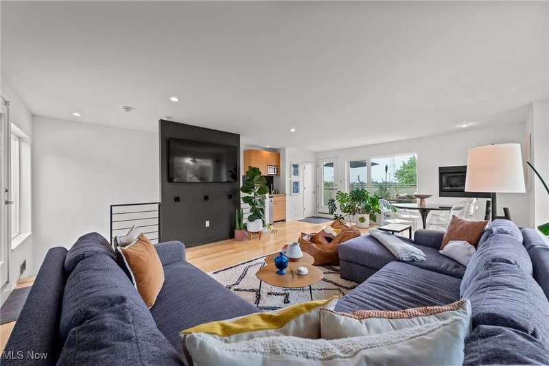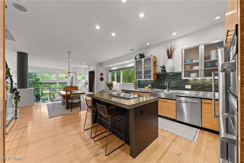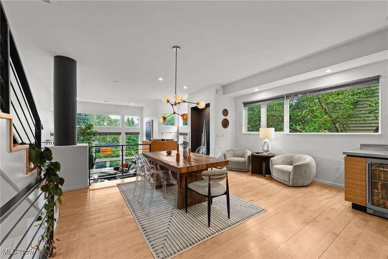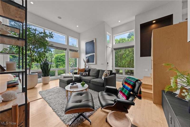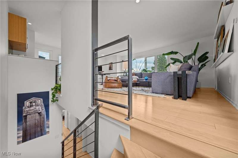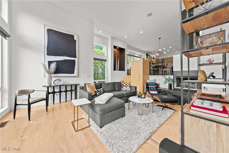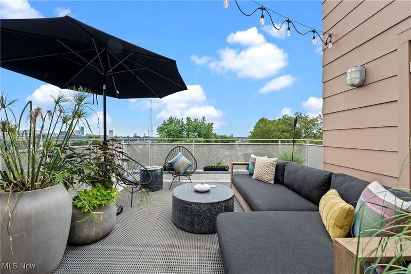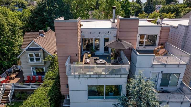 Sited on a knoll in the heart of Tremont, this one of a kind Barry Smith designed 4 level townhome is in a class of its own!! Set off the street for maximum privacy, this end unit is surrounded by lush landscaping and has the most incredible outdoor entertainment space. Custom stone steps lead you into the dramatic foyer and sunlit interior! Walls of windows, hardwood floors throughout, and an exceptional design esthetic are evident throughout. The two story great room has floor to ceiling architectural windows and a handsome wood burning fireplace. At the heart of this home is the amazing kitchen/dining room area which will make entertaining exciting. Bamboo cabinets, a center-island, custom tile backsplash, pantry, and high end stainless steel appliances are just a few of the outstanding amenities. The bedroom level features two amazing suites each with private bathrooms. The owner's suite is incredibly luxurious, has unobstructed city views, and a spa like bathroom(dual vanities, steam shower, and private commode.) The piece de resistance is the upper level entertainment area which is surrounded in glass, has city views second to none, and the most remarkable rooftop terraces. There is a wet bar with wine refrigerator, surround sound system, and cozy fireplace. On top of all of this there is a finished lower level with an exercise room and private home office. Summers can also be enjoyed in the main level outdoor area which features a fabulous rock garden and stone patio. Added amenities include a private rear entrance garage on the main level, tankless hot water tank, and exceptional storage. Ideally located within steps of your favorite restaurants and the Towpath trail, this one of a kind property is more than just an incredible residence, it's a lifestyle!!