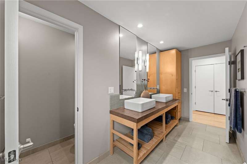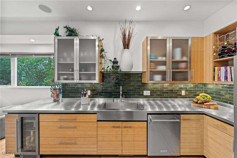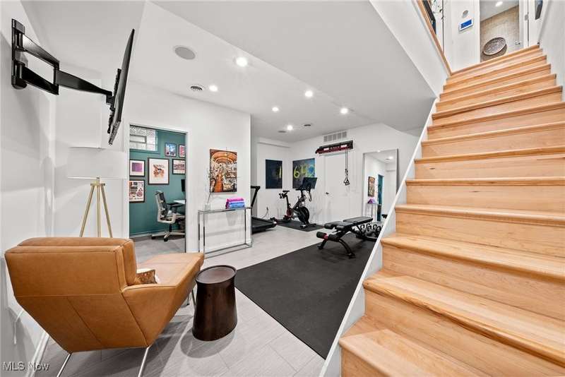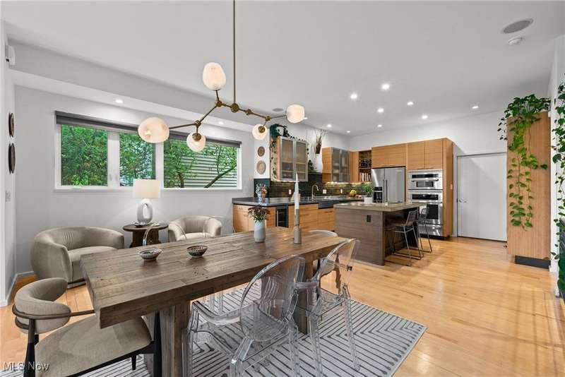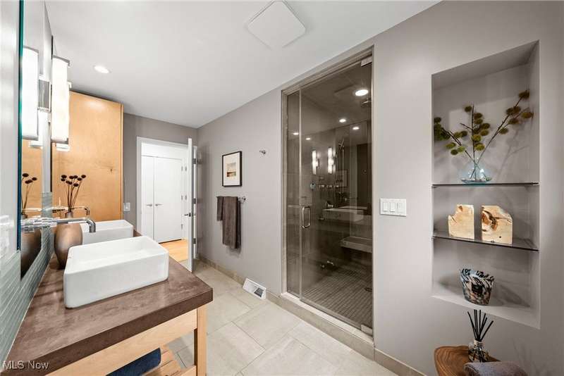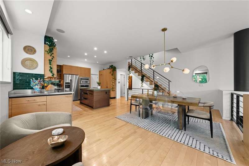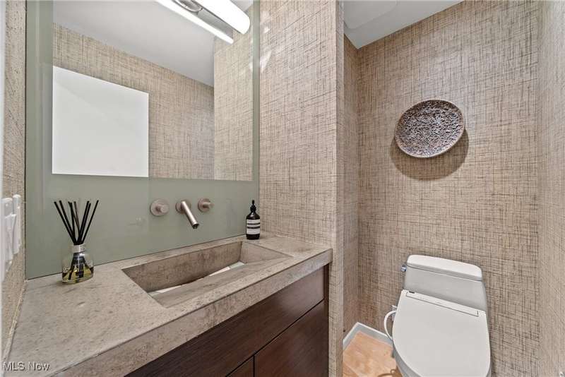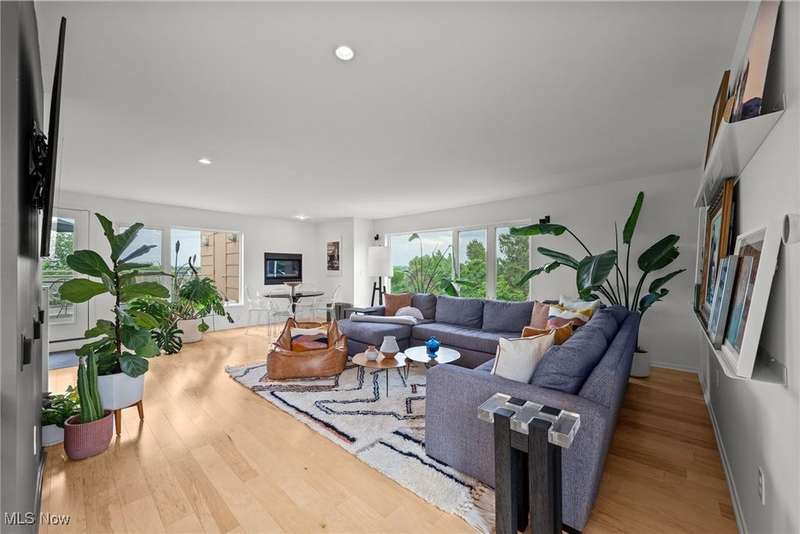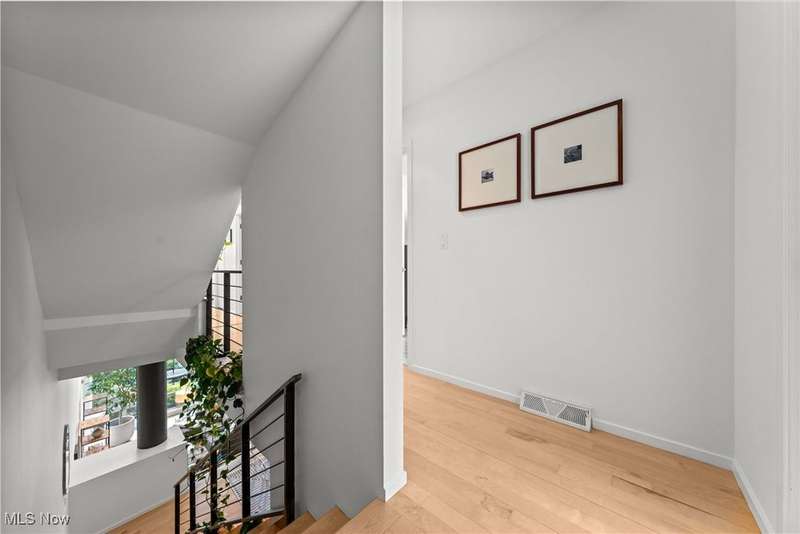Sited on a knoll in the heart of Tremont, this one of a kind Barry Smith designed 4 level townhome is in a class of its own!! Set off the street for maximum privacy, this end unit is surrounded by lush landscaping and has the most incredible outdoor entertainment space. Custom stone steps lead you into the dramatic foyer and sunlit interior! Walls of windows, hardwood floors throughout, and an exceptional design esthetic are evident throughout. The two story great room has floor to ceiling architectural windows and a handsome wood burning fireplace. At the heart of this home is the amazing kitchen/dining room area which will make entertaining exciting. Bamboo cabinets, a center-island, custom tile backsplash, pantry, and high end stainless steel appliances are just a few of the outstanding amenities. The bedroom level features two amazing suites each with private bathrooms. The owner's suite is incredibly luxurious, has unobstructed city views, and a spa like bathroom(dual vanities, steam shower, and private commode.) The piece de resistance is the upper level entertainment area which is surrounded in glass, has city views second to none, and the most remarkable rooftop terraces. There is a wet bar with wine refrigerator, surround sound system, and cozy fireplace. On top of all of this there is a finished lower level with an exercise room and private home office. Summers can also be enjoyed in the main level outdoor area which features a fabulous rock garden and stone patio. Added amenities include a private rear entrance garage on the main level, tankless hot water tank, and exceptional storage. Ideally located within steps of your favorite restaurants and the Towpath trail, this one of a kind property is more than just an incredible residence, it's a lifestyle!!