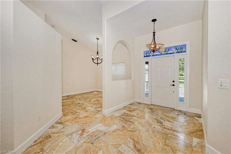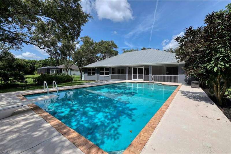 Discover the perfect balance of country living and waterfront lifestyle in this stunning single-family home, nestled in the serene rural community of Citrus River Estates in Fort Myers. Situated on 1.16 acres along the navigable Orange River-with direct access to the Caloosahatchee River-this property offers privacy, space, and endless opportunities for outdoor enjoyment. With nearly 2,851 sq. ft. of living area (5,791 sq. ft. total), the home features 4 bedrooms, 2 full baths, and a convenient half bath on the lanai for poolside guests. A spacious den with wet bar hookups provides flexibility for entertaining or working from home. Soaring vaulted ceilings and an open floor plan create a bright, airy atmosphere, complemented by a formal dining room, family room, and eat-in kitchen. The modern kitchen blends function and style with stainless steel appliances, a pantry, solid-surface countertops, and a chic backsplash. Retreat to the spa-inspired master bath, showcasing a two-person shower with rainfall head, jetted tub, dual sink vanity, and contemporary finishes. Step outside to your private oasis-an oversized, deep pool large enough for a diving board and a dock along the river, perfect for launching a kayak, canoe, or small boat. The oversized three-car garage offers plenty of space for vehicles, tools, and toys. Ideally located near Buckingham Farms, an 80+ acre working farm and farm-to-table restaurant, and just minutes from schools, grocery stores, and major highways, this home combines tranquility with convenience. An elevation certificate and survey are available upon request.